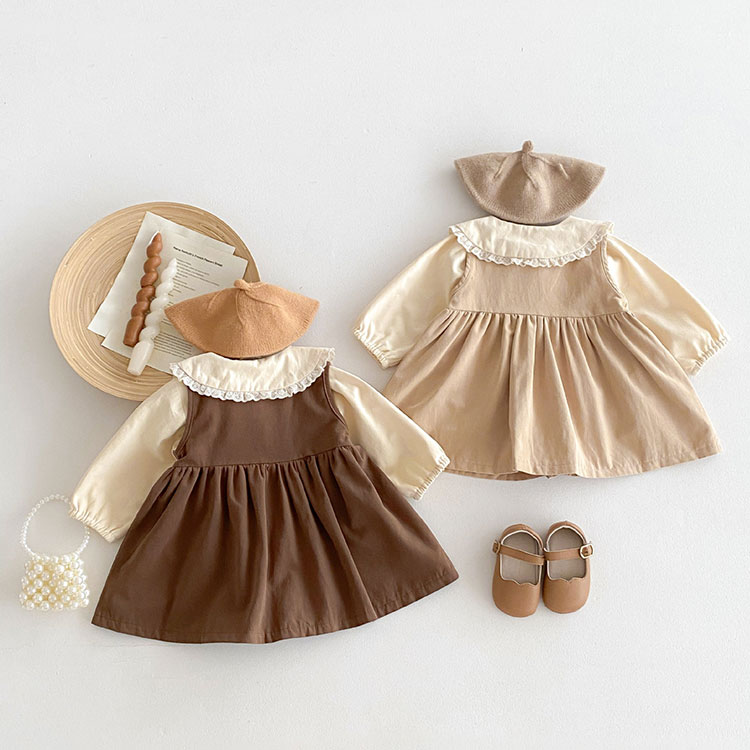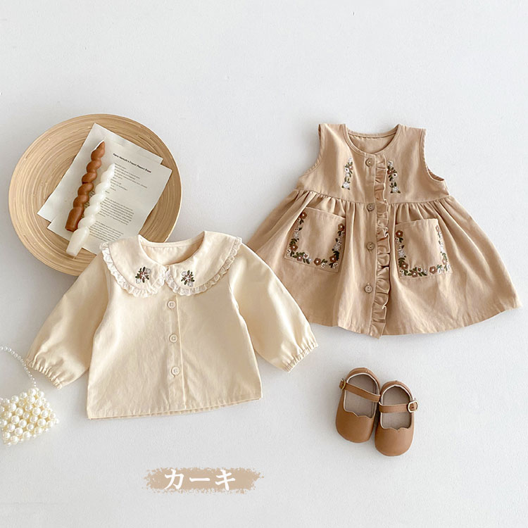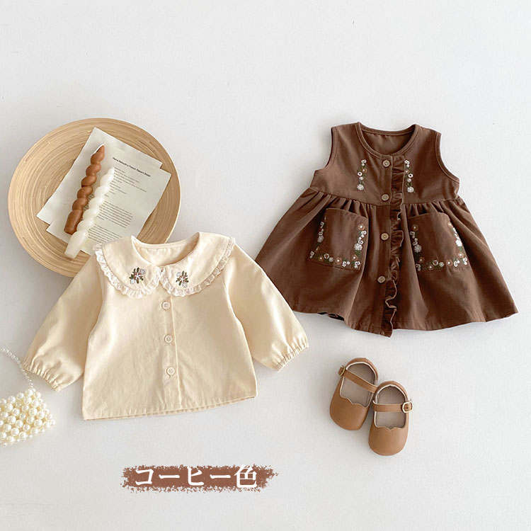 子供服 女の子 ワンピース 長袖シャツ ベビー ベビー服 ファッション 上下セット セットアップ お買い得 コーヒー色 カーキ 73cm 80cm 90cm 100cm 110cm