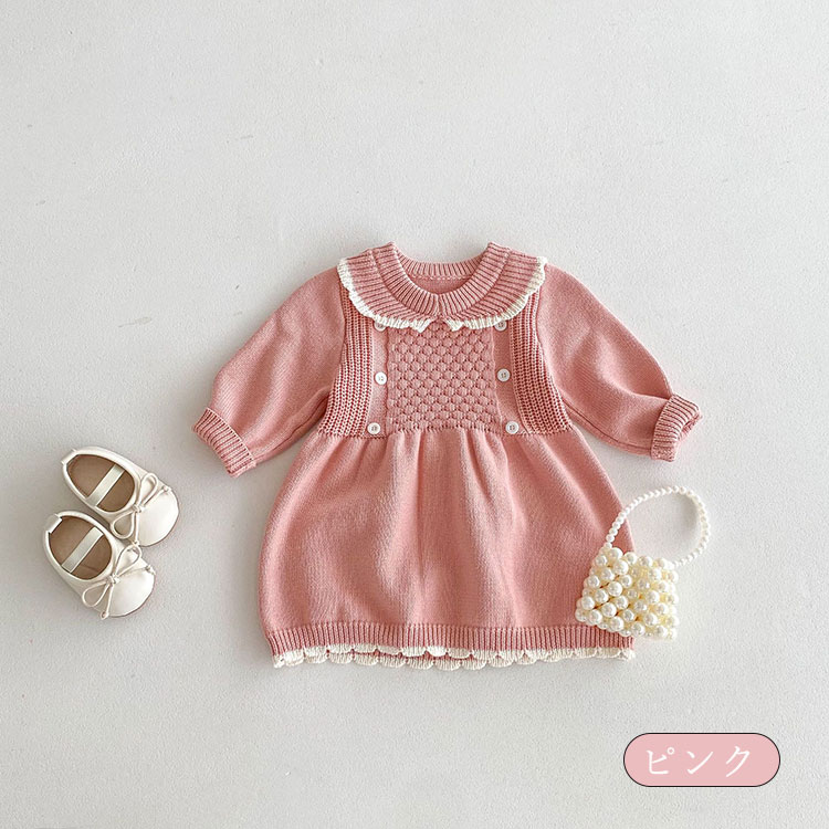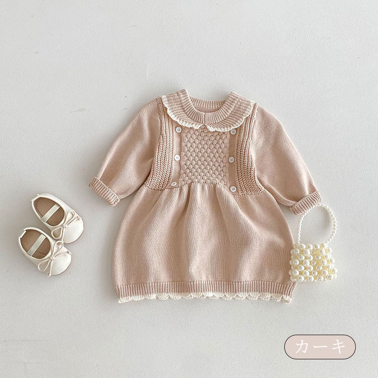 子供服 ニットワンピース 丸襟 女の子 キッズ ワンピース お得なセール カーキ ピンク 80cm 90cm 100cm 110cm 120cm 130cm