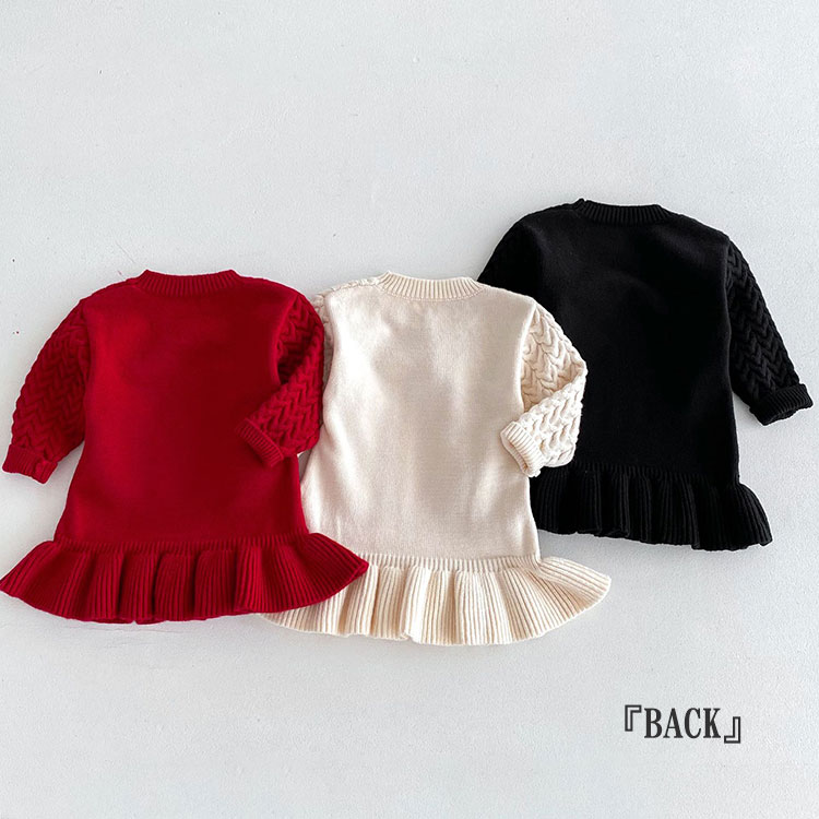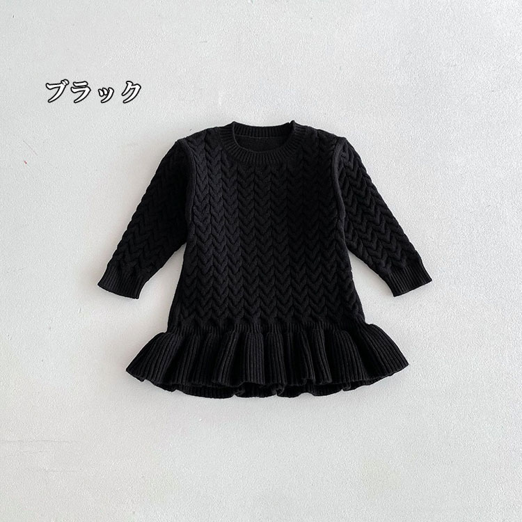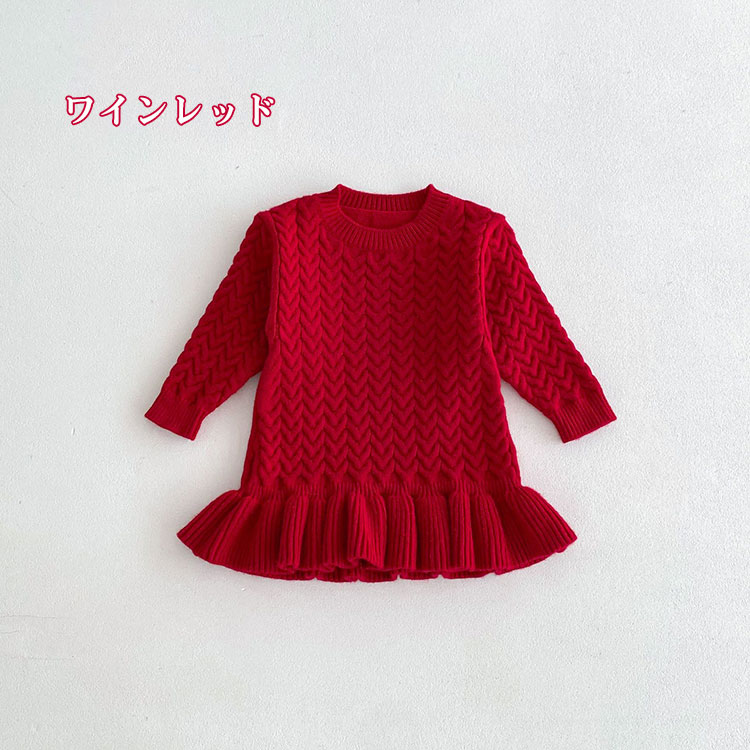 子供服 ケーブルニットワンピース 女の キッズ ワンピース 豊富 ベージュ ブラック ワインレッド 80cm 90cm 100cm 110cm 120cm 130cm