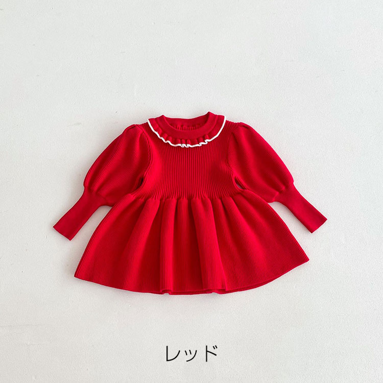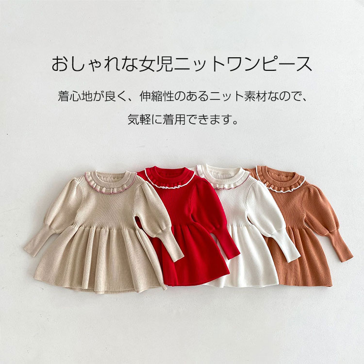 子供服 ニットワンピース 春秋 冬 ワ キッズ ベビー マタニティ 豊富な品揃え ベージュ カーキ ホワイト レッド 80cm 90cm 100cm 110cm 120cm 130cm