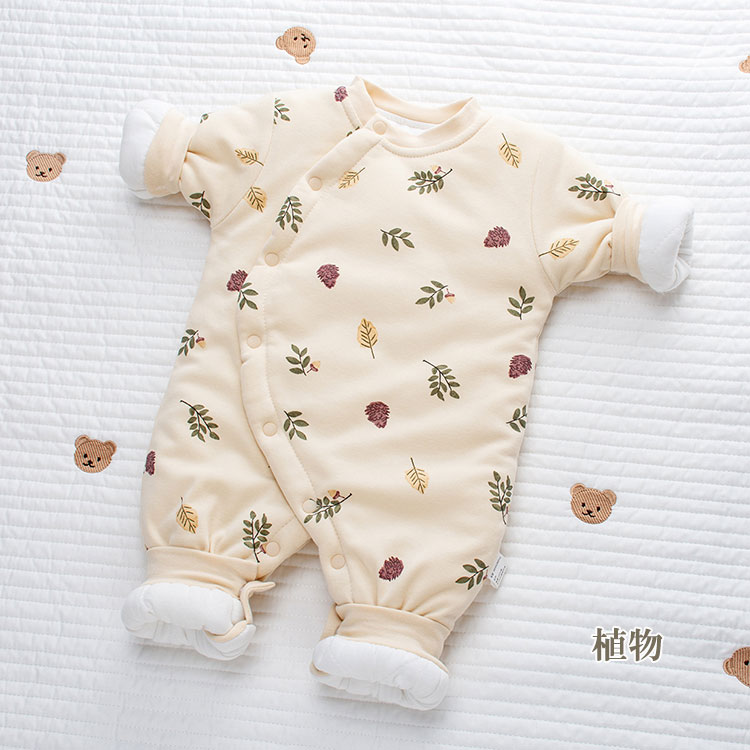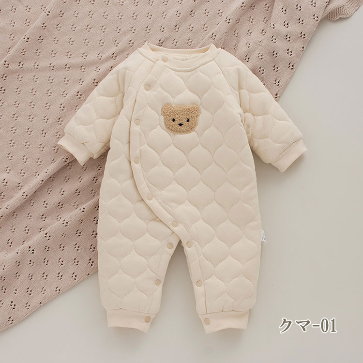 秋冬 カバーオール 中綿入り 防寒 か キッズ ベビー マタニティ 人気 クマ-01 植物 クマ-02 ウサギ 59cm 66cm 73cm 80cm
