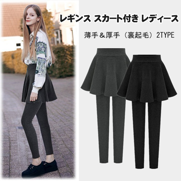 レギンス スカート付き レディース ス レディース 靴下 レッグウェア スパッツ レギンス 続々入荷中 ブラック(薄手) ダークグレー(薄手) ブラック(裏起毛) ダークグレー(裏起毛) M L XL 2XL 3XL 4XL