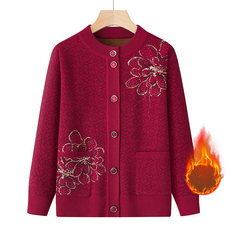 シニアファッション ニットカーディガン レディースファッション 新作 ワインレッド ネイビー コーヒー色 パープル ワインレッド(裏起毛) ネイビー(裏起毛) コーヒー色(裏起毛) パープル(裏起毛) XL 2XL 3XL 4XL 5XL
