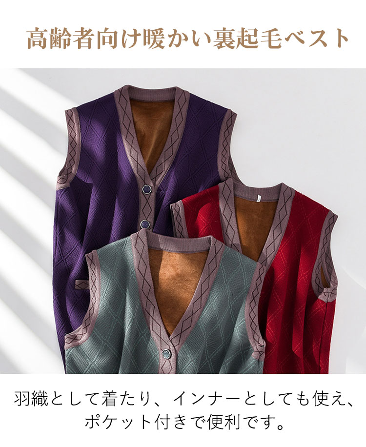 シニアファッション レディース 婦人 トップス ベスト 豊富 グリーン チリアンパープル パープル ボルド ワインレッド XL 2XL 3XL 4XL