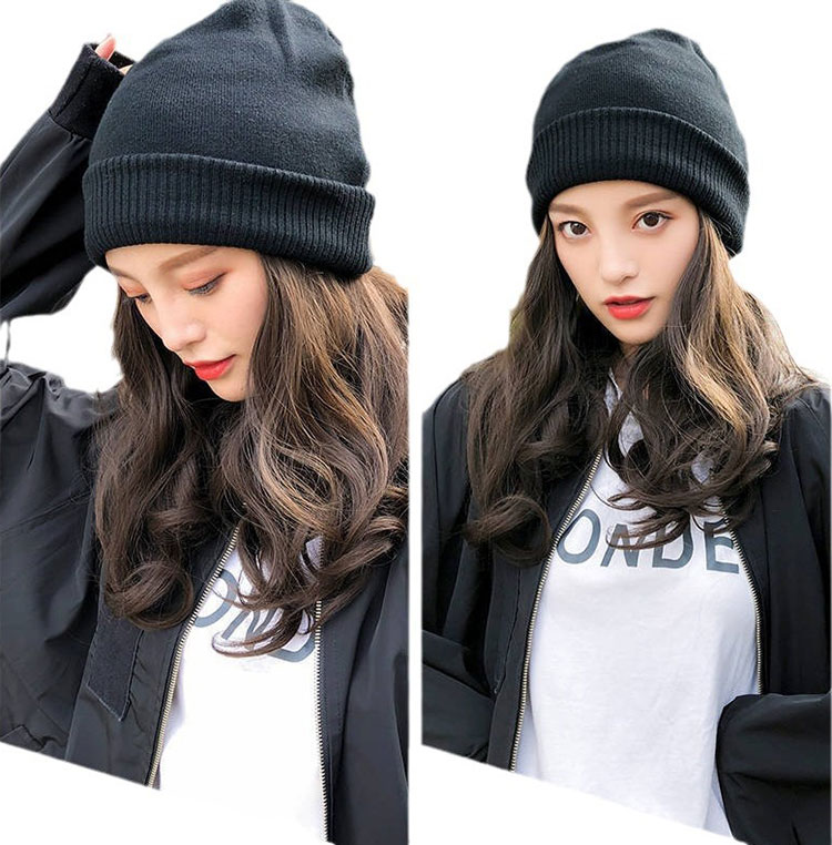髪付き 帽子 ウィッグ 付き ニット帽 バッグ 小物 ブランド雑貨 続々入荷中 ブラック カーキ ホワイト グレー