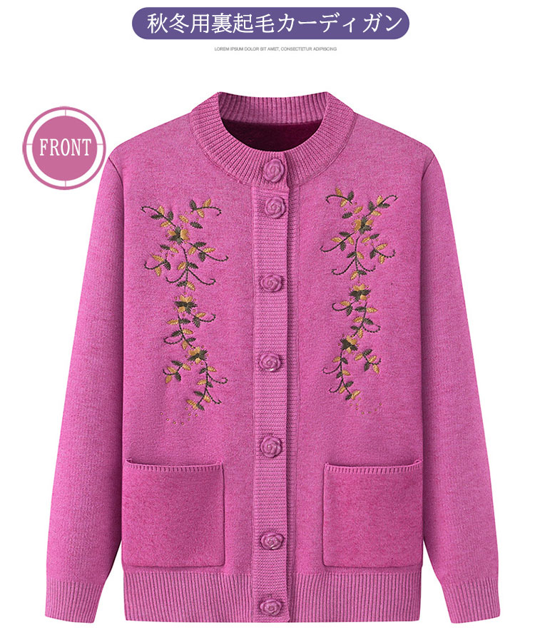 秋冬 おばあちゃん用裏起毛ニットカーデ