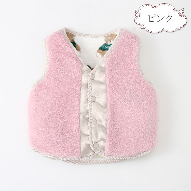 キッズ ベビー 秋冬 ボアベスト リバ キッズ ベビー マタニティ 続々登場 ホワイト ピンク カーキ グレー 90cm 100cm 110cm 120cm 130cm