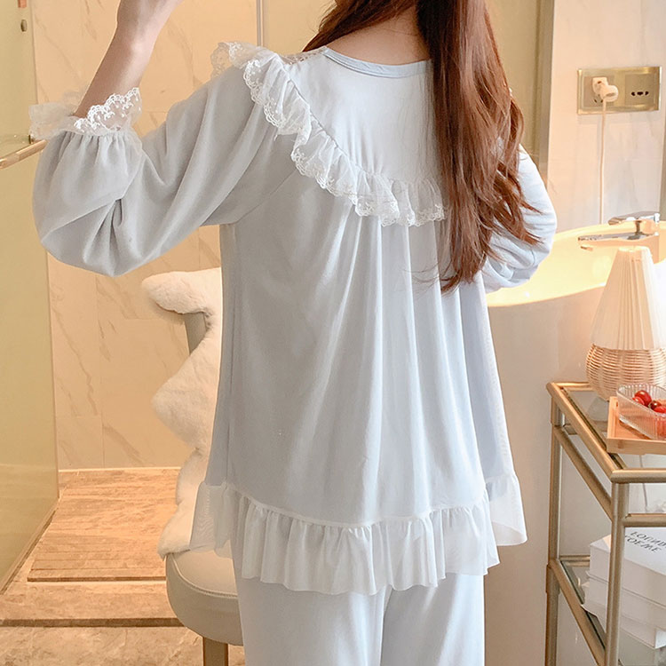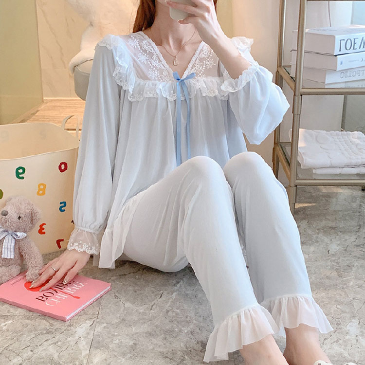 レース パジャマ 2点セット レディー レディース ナイトウェア ルームウェア ルームウェア 上下セット 通販 ブルー ピンク ホワイト M L XL