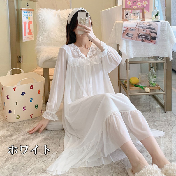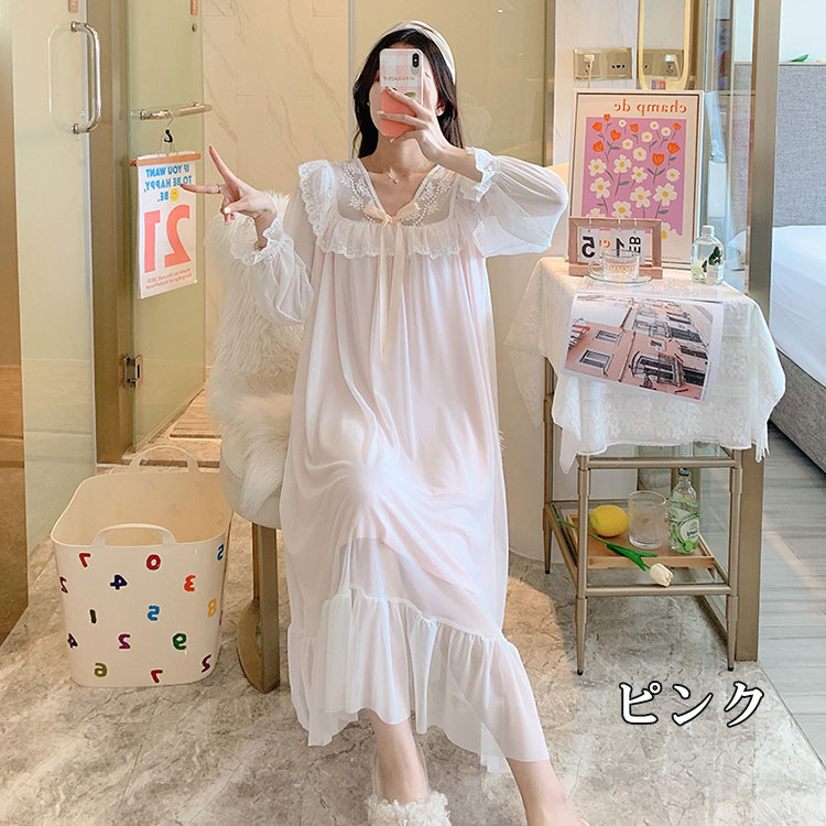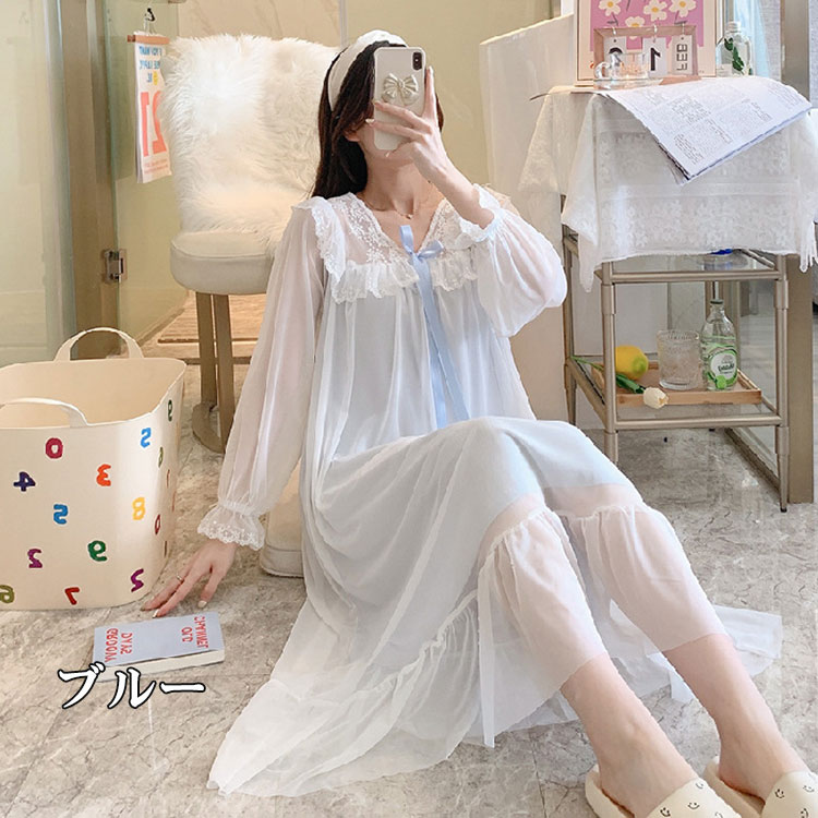 パジャマ レディース ネグリジェ 長袖 インナー 下着 ナイトウエア 続々入荷中 ブルー ピンク ホワイト M L XL