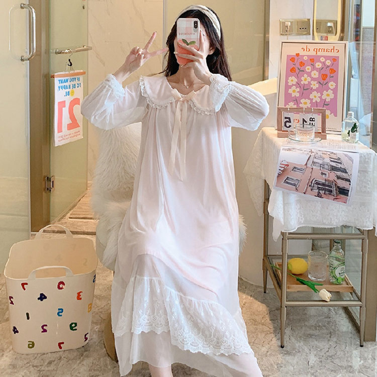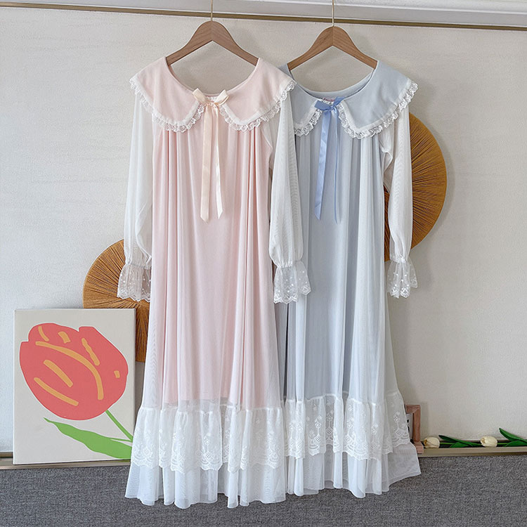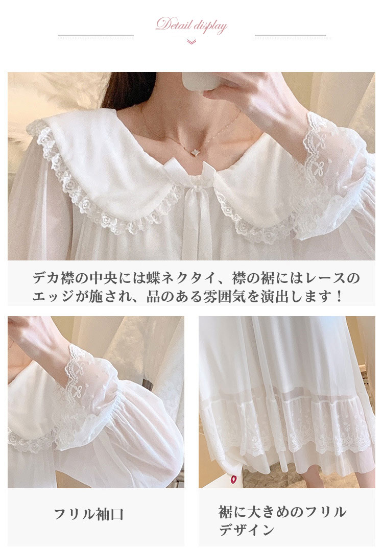 ネグリジェ レディース 長袖 パジャマ レディース ナイトウェア ルームウェア ネグリジェ 新作 ホワイト ブルー ピンク S M L XL