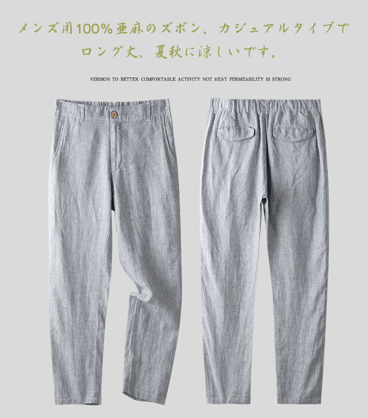 リネン 長ズボン メンズ 亜麻 春夏 メンズファッション 39%Off グレー ベージュ ネイビー 【S】 【M】 【L】 【XL】 【XXL】