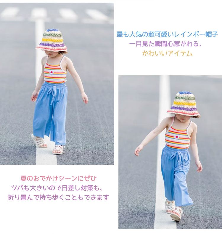 子供 帽子 おしゃれ 虹色 遮光 麦わ キッズ ベビー マタニティ 続々入荷中 ベージュ カーキ