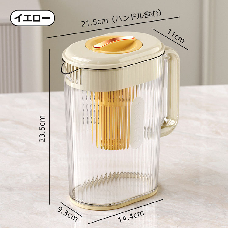 冷水ポット 1.6L 冷蔵庫ポット 冷 保存容器 調味料入れ 水差し 通販 イエロー ホワイト ブラック