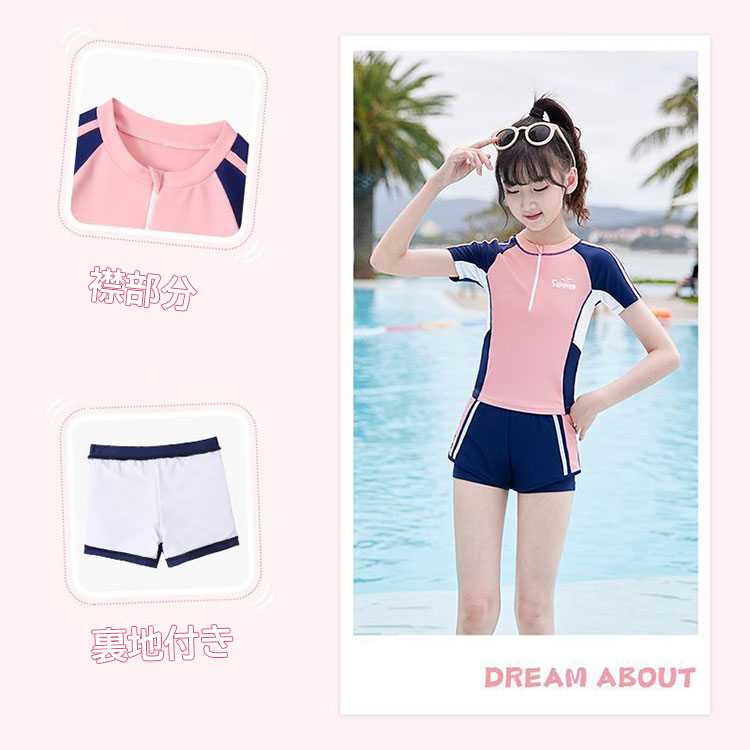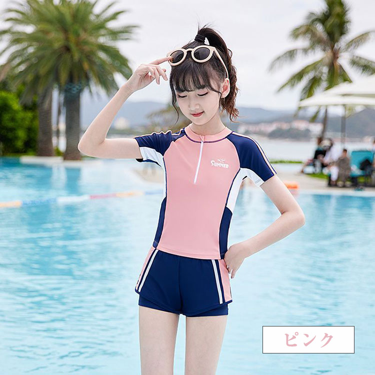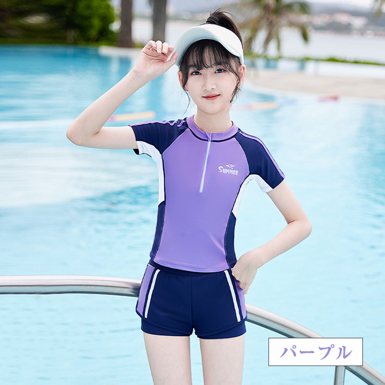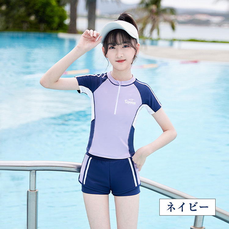 子供水着 セパレート 2点セット スク キッズ ベビー マタニティ 割引 ピンク パープル ネイビー 黒白 L(100-110cm) XL(110-120cm) 2XL(120-130cm) 3XL(130-145cm) 4XL(140-150cm) 5XL(150-165cm) 6XL(165-170cm)