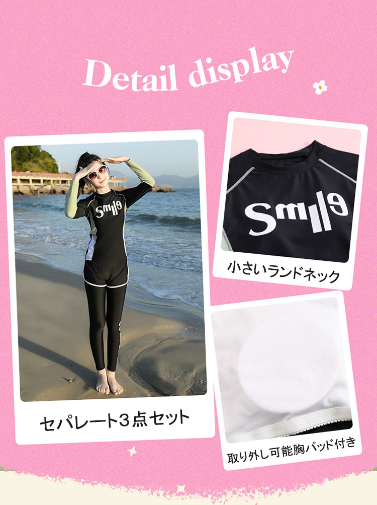 UVカット 水着 女の子 3点セット キッズ ベビー マタニティ 続々登場 140cm 150cm 160cm 165cm 170cm