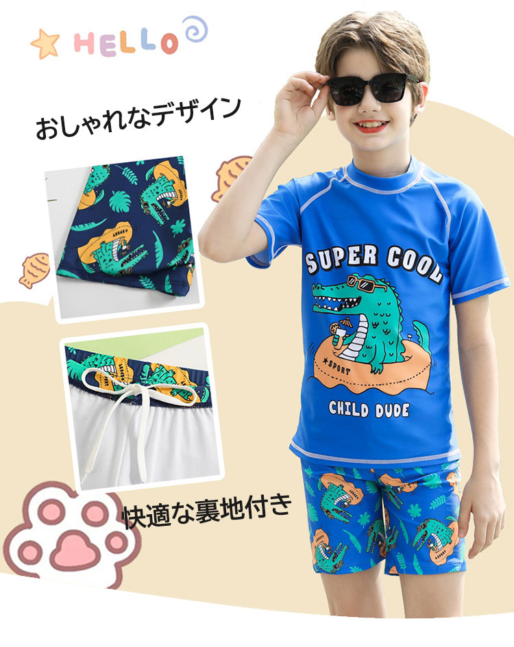 キッズ 水着 男の子 セパレート 3点 キッズ 水着 続々登場 ネイビー ブルー 140cm 150cm 160cm 165cm 170cm