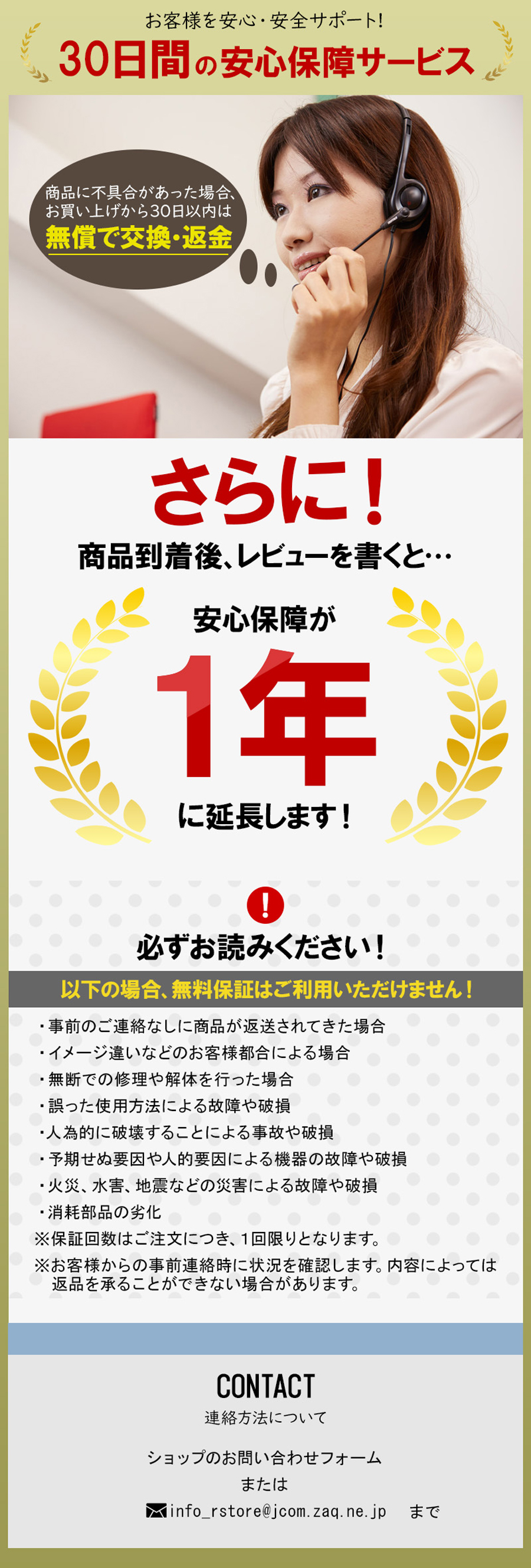 ※法律上の請求原因の種類を問わず、いかなる場合においても弊社の商品または商品のご使用から生じた障害、損傷により生じた直接または間接的に発生した商品以外への損失の発生、工賃、事業の中断、事業情報の損失またはその他の金銭的損害に対して弊社はその一切の責任は負わないものとします。