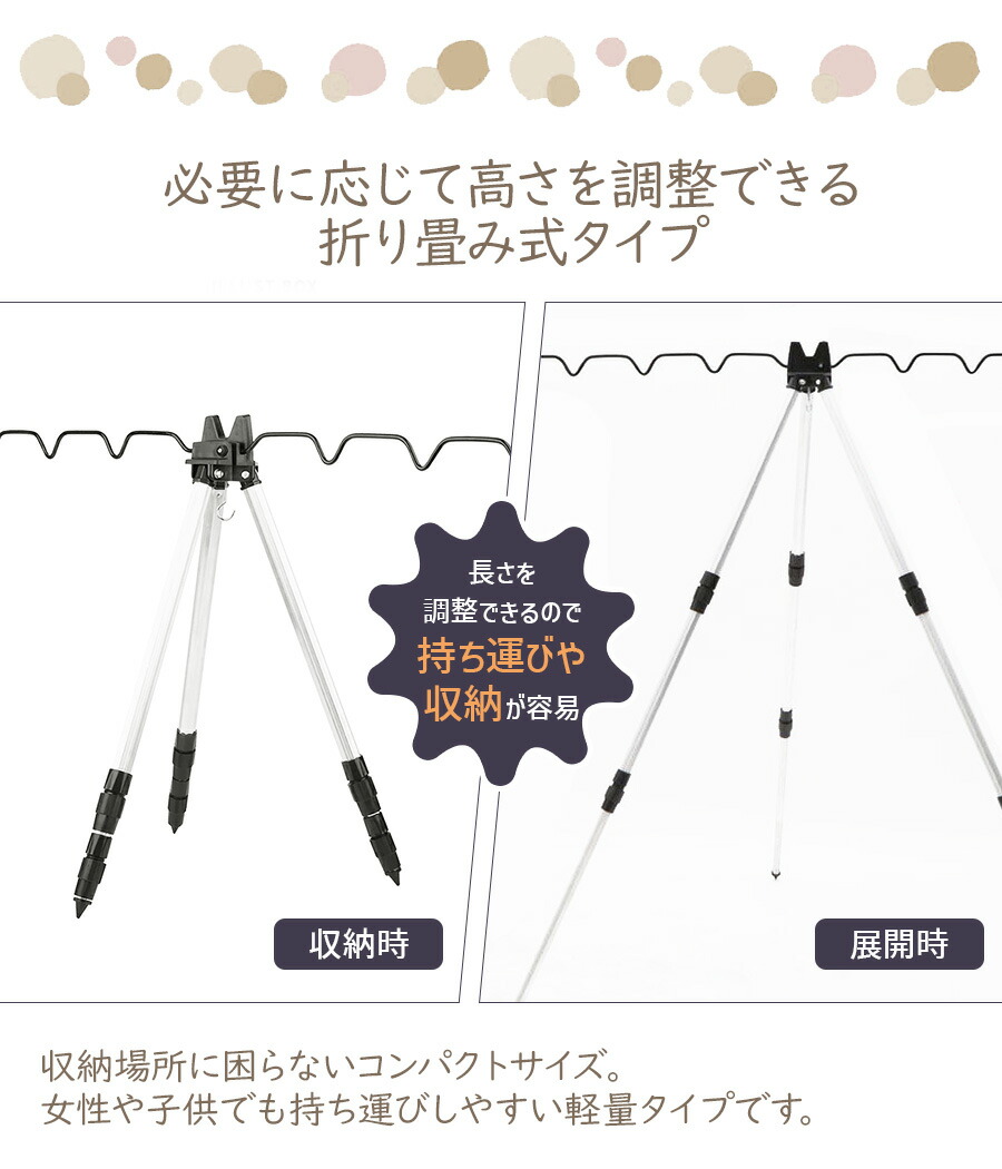 コンパクトに折りたたむことができるので収納時に場所をとることがなく、持ち運びもラクラク。