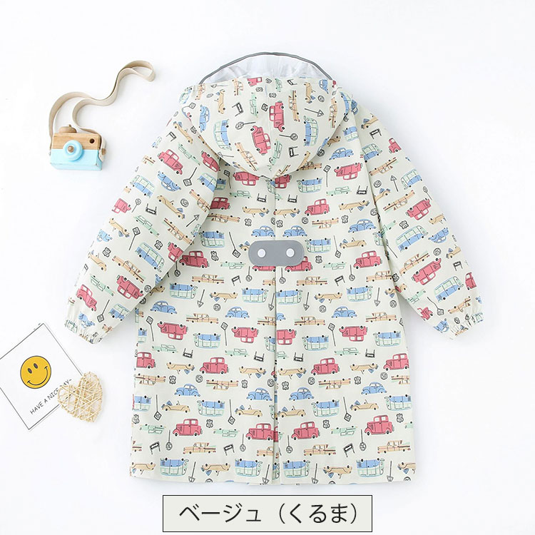 4色 キッズ レインウェア レインコー スポーツ アウトドア 続々登場 ブルー(星) イエロー(恐竜) ベージュ(くるま) ピンク(さくらんぼ) S M L XL 2XL 3XL