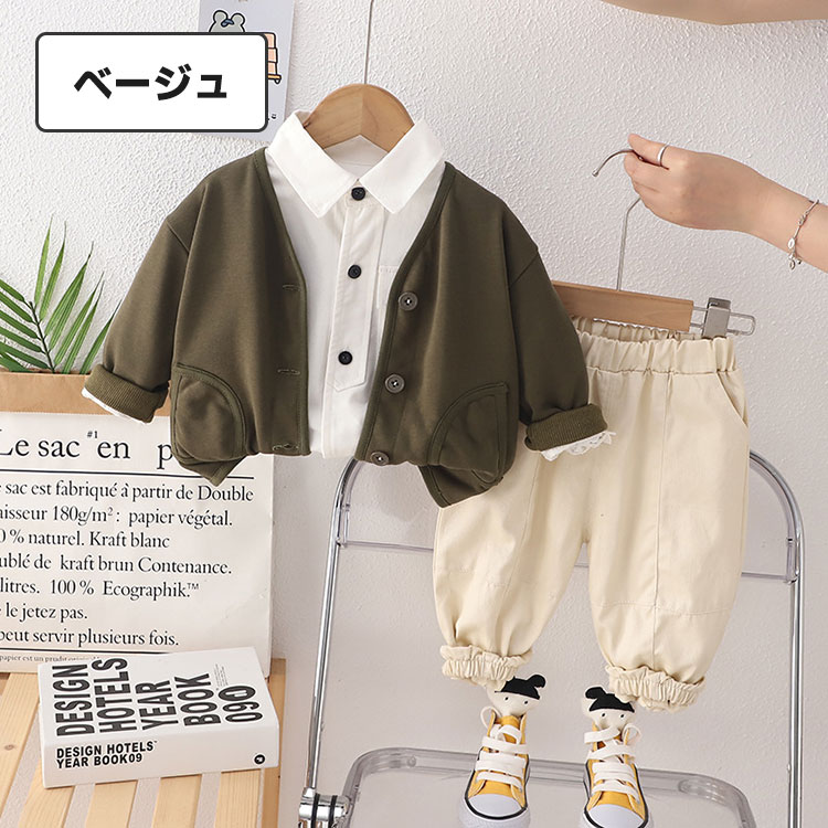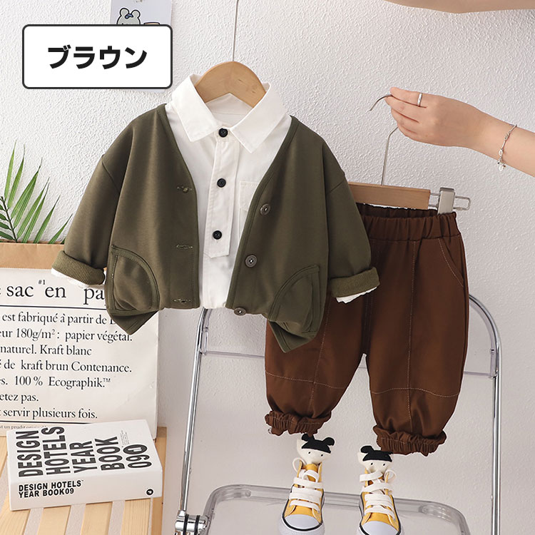 こども服 3点セット 男の子 セットア キッズ スーツ カジュアルセットアップ カジュアルパンツセット 続々登場 ブラウン ベージュ 80cm 90cm 100cm 110cm 120cm