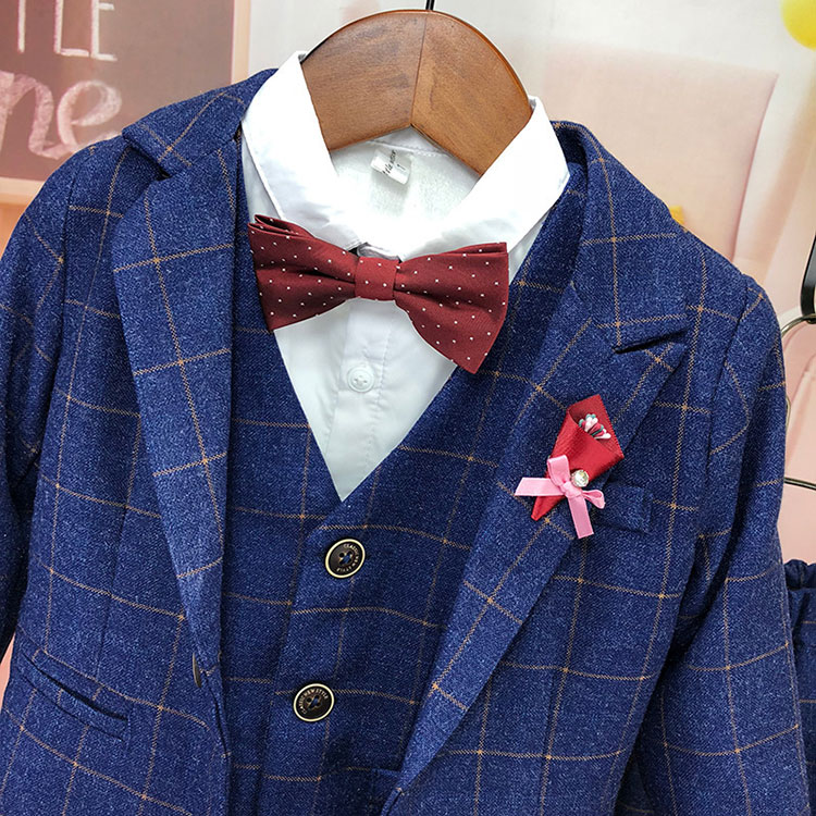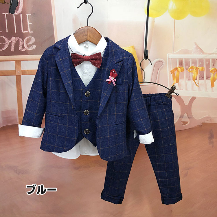 男の子 チェック柄 カジュアルスーツ フォーマルスーツ 3点セット 子供スーツ キッズ 高品質 子供服 入学式 卒業式 紳士服 発表会 演奏会 プレゼント 90 100 110 120 130 135