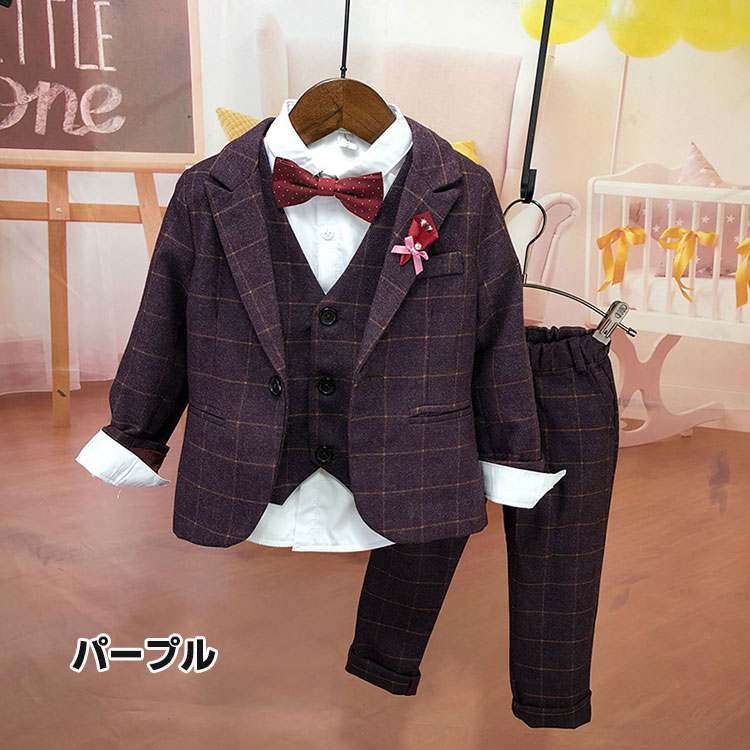 男の子 チェック柄 カジュアルスーツ キッズ スーツ カジュアルセットアップ スーツ お得なセール グレー(3点セット) ブルー(3点セット) パープル(3点セット) (7#)90cm (9#)100cm (11#)110cm (13#)120cm (15#)130cm (17#)135cm
