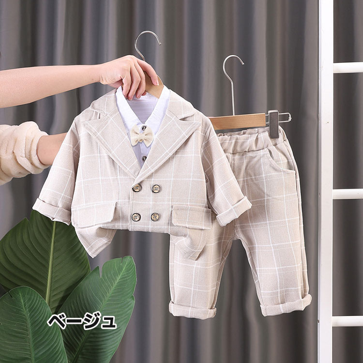 男の子スーツ フォーマルスーツ 3点セ キッズ スーツ カジュアルセットアップ スーツ お得なセール ネイビー ベージュ 80cm 90cm 100cm 110cm 120cm