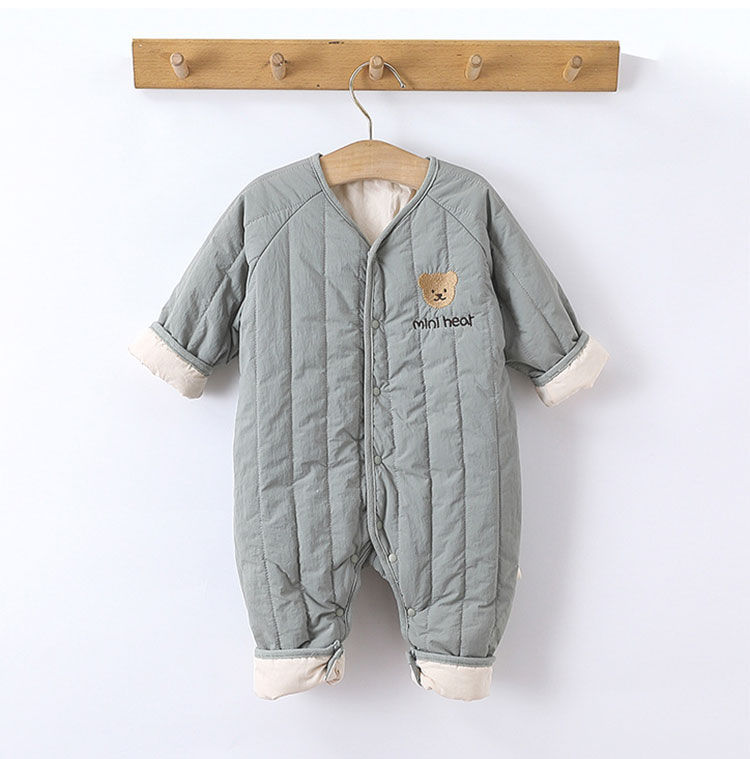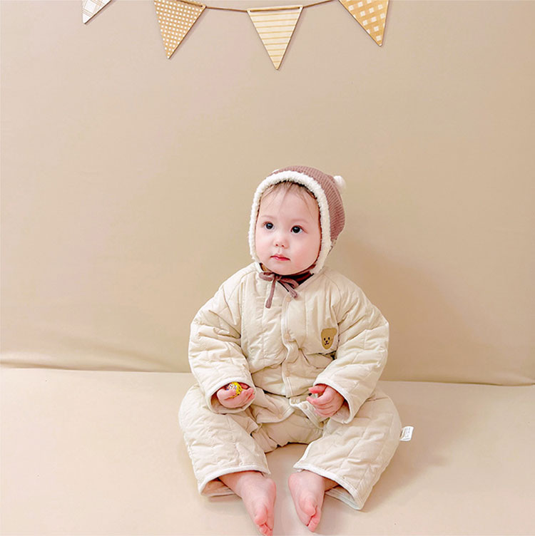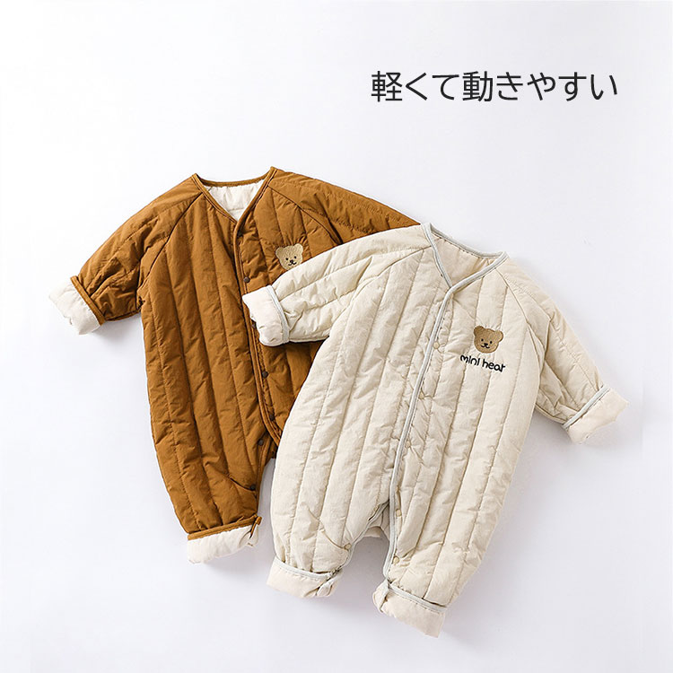 3色 ベビー カバーオール 中綿入り ベビー ベビー服 ファッション カバーオール ロンパース 人気 ベージュ グレーグリーン ブラウン 66cm 73cm 80cm 90cm