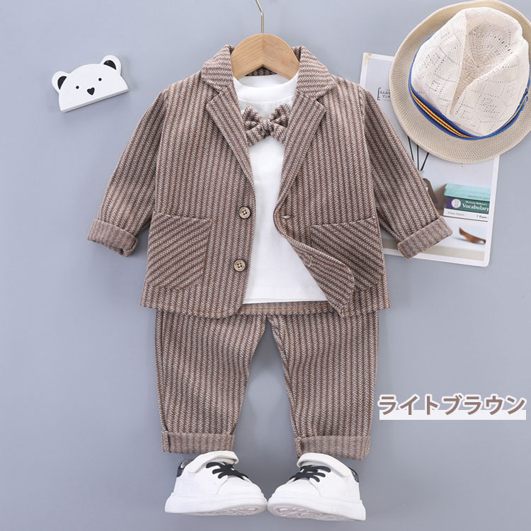 キッズ スーツ 男の子 3点セット 子 キッズ スーツ カジュアルセットアップ スーツ お得なセール ライトブラウン グレー 80cm 90cm 100cm 110cm 120cm