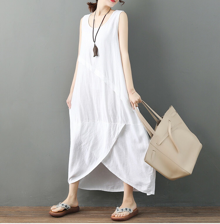 【3点送料無料】ノースリーブ 綿麻ワンピース リゾートワンピ リゾート ワンピース レディース 新作 Aラインワンピ マキシワンピース コットン リネン ロングワンピース 夏 綿麻 カジュアル 森ガール ワンピース 無地 体型カバー ナチュラル