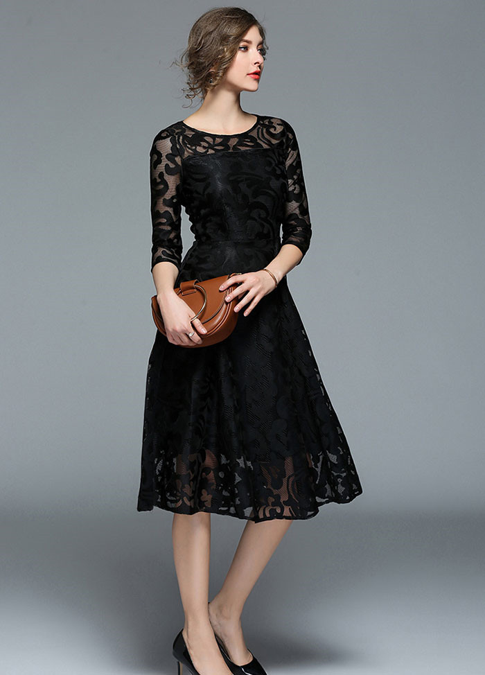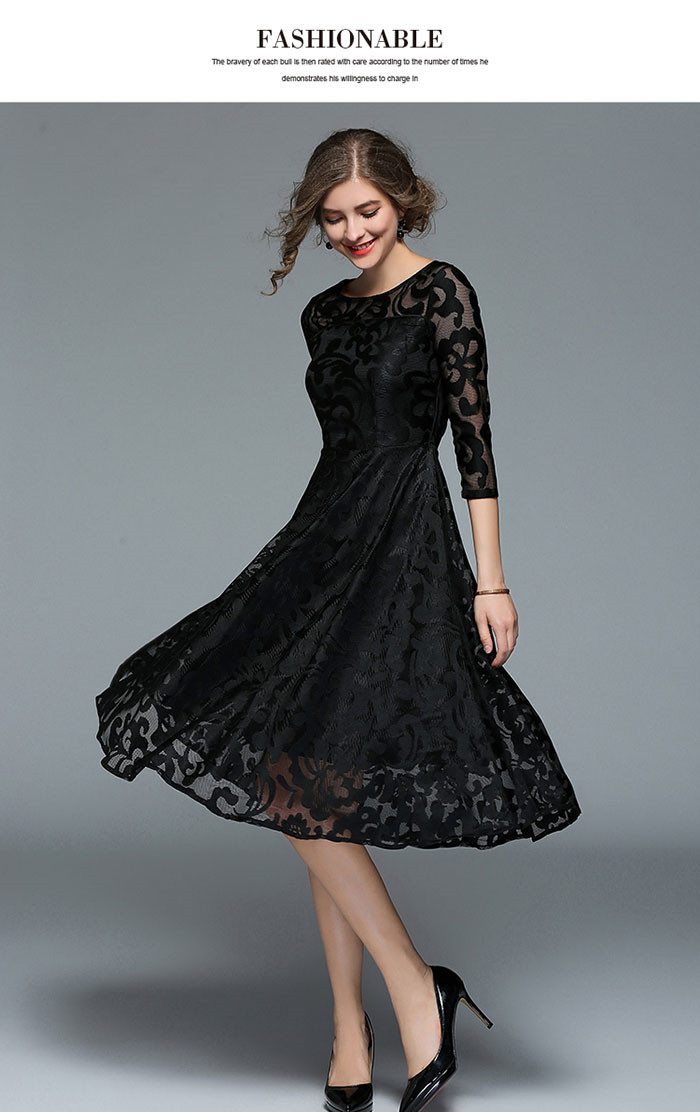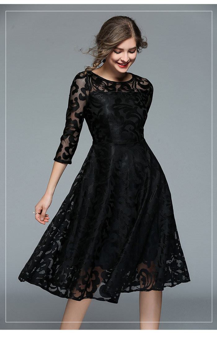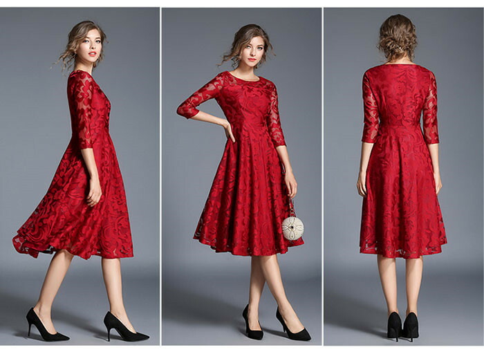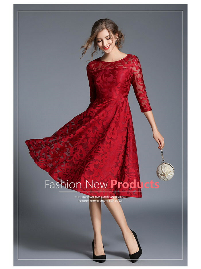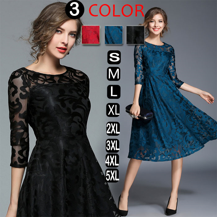 「送料無料」ドレス ロングドレス ミモレ丈ワンピ 総レース レースワンピ 結婚式 パーティードレス 袖あり ワンピース ドレス ロング丈ワンピ-ス 七分袖 ワンピース パーティー ドレス 二次会 披露宴 フォーマルドレス レデイース オシャレ エレガント 上品 お呼ばれ 大きいサイズ