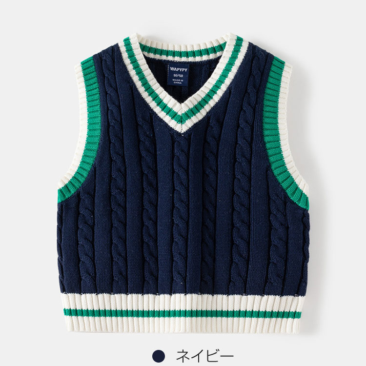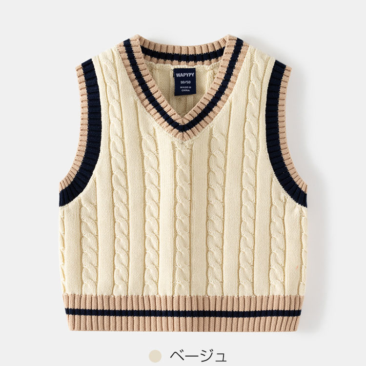 2色 キッズ ライン入り Vネック ニ キッズ トップス ベスト 36%Off ネイビー ベージュ 100cm 110cm 120cm 130cm