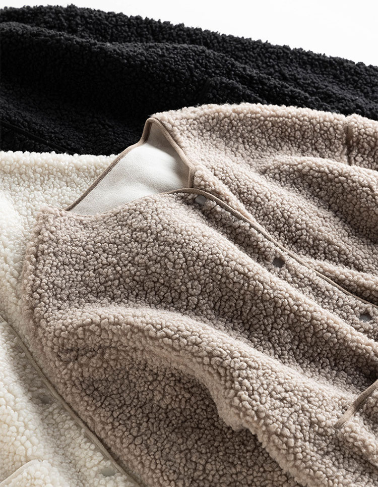 Vネック ボア ジャケット フリースジ レディースファッション お得なセール ホワイト カーキ ブラック M(40-55kg) L(55-70kg)