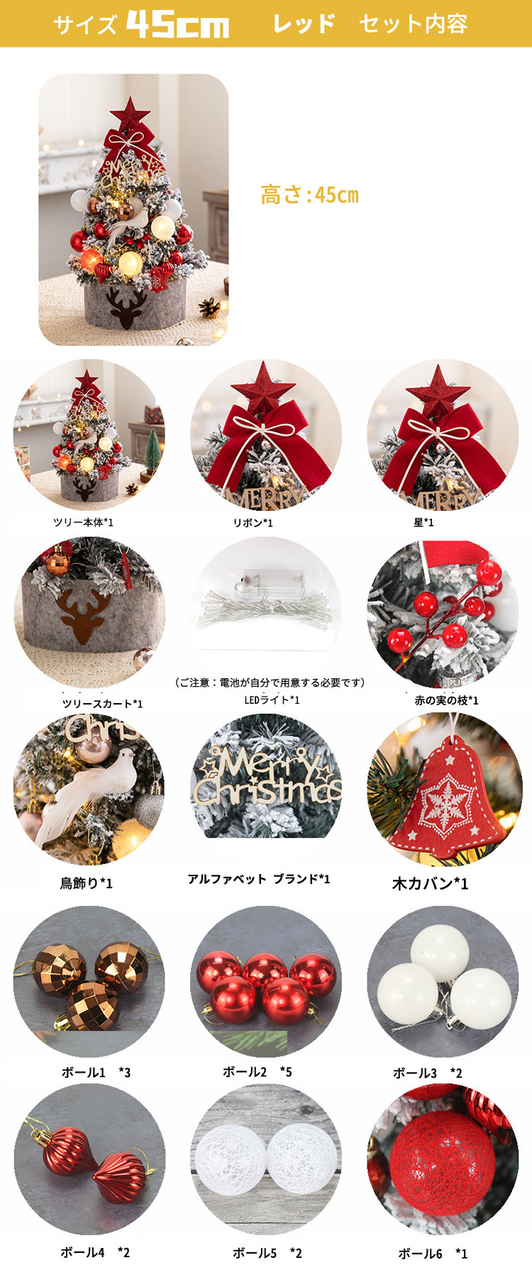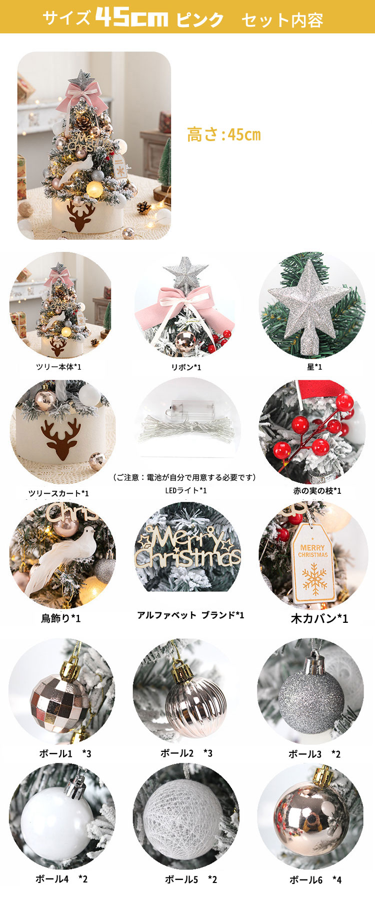 クリスマスツリー 卓上 45cm ミニ ピンク レッド