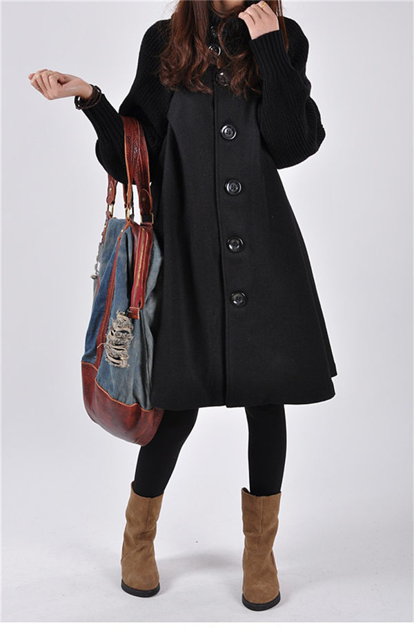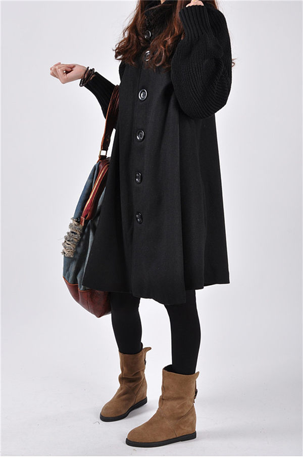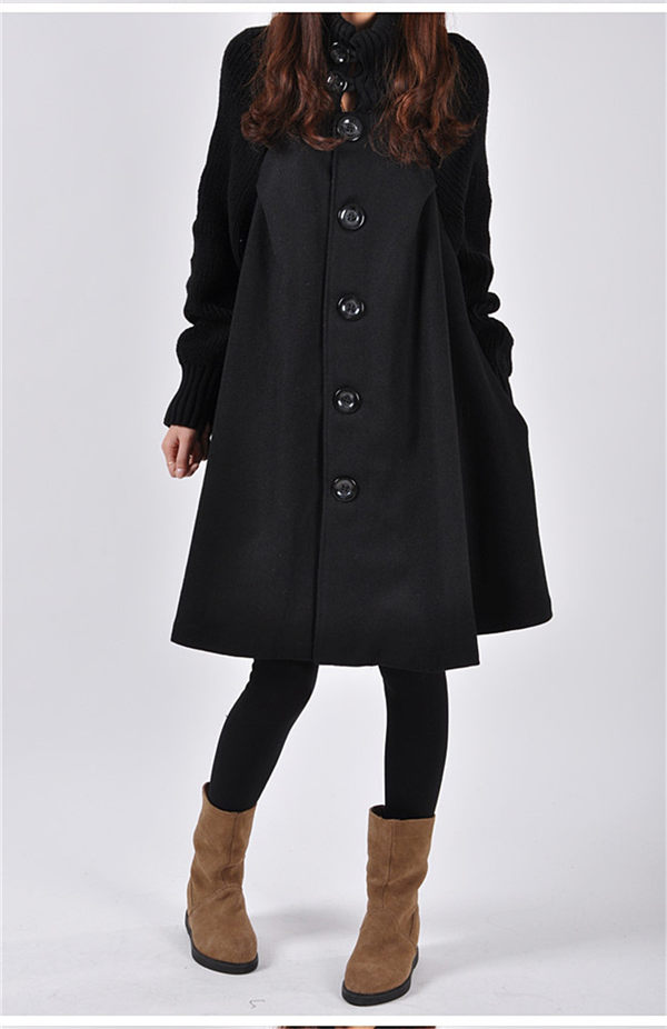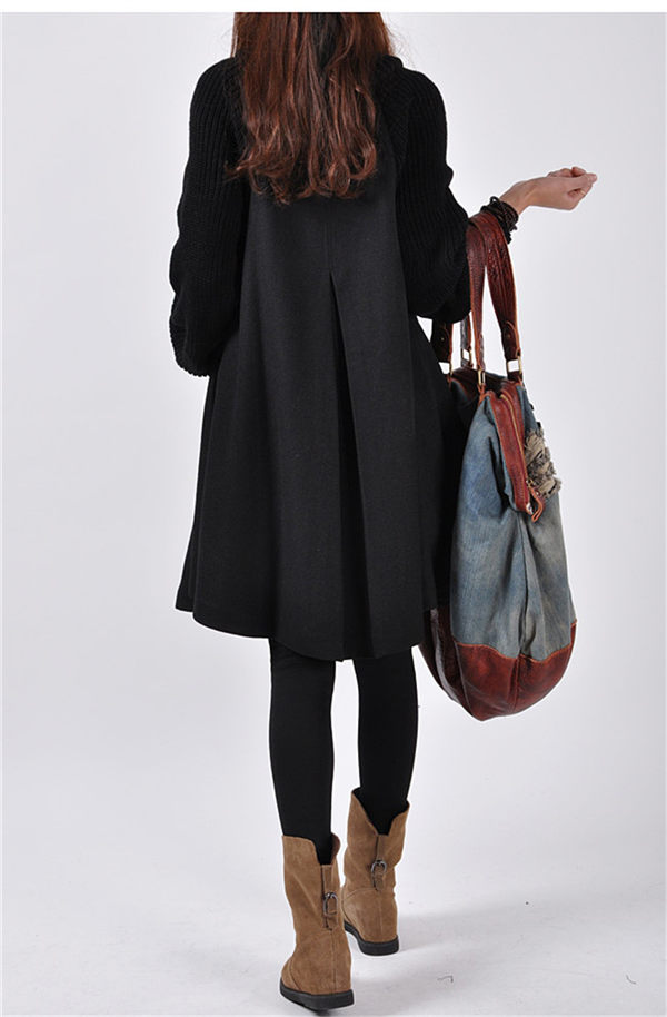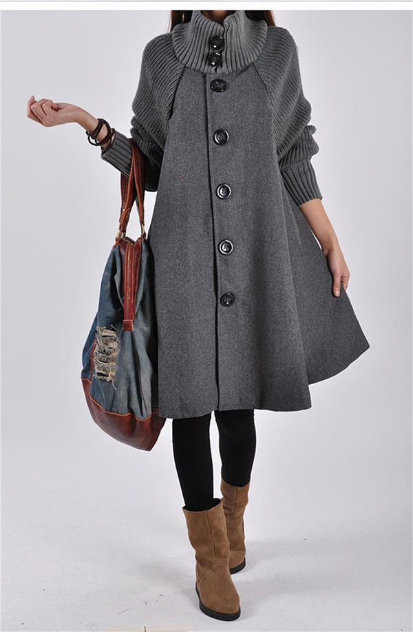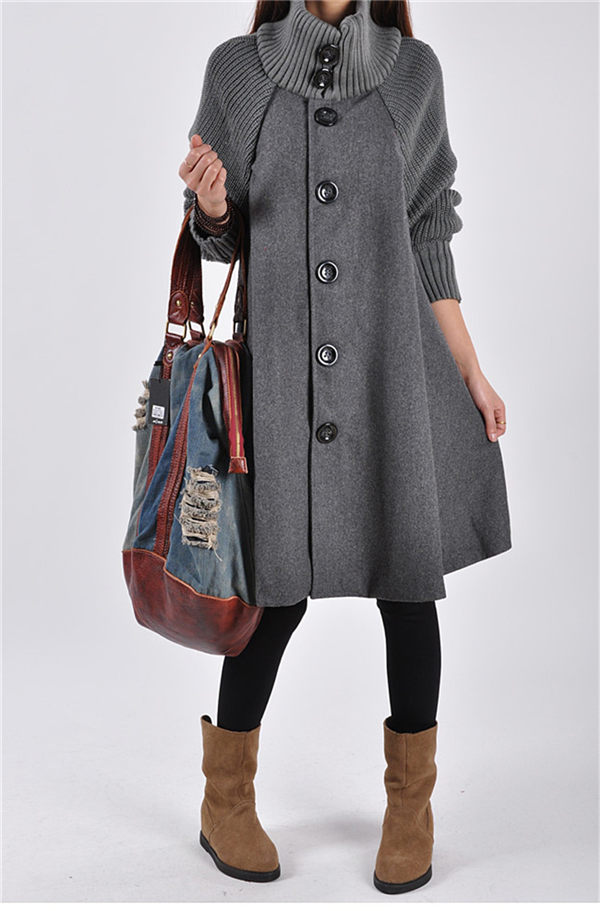 ニット切り替え Aラインコート ロングコート ハイネック ニット コート ゆったり アウター 体型カバー チェスターコート レディース 秋冬 ラシャコートロング丈 ロングコート タートルネック エレガント お洒落 通勤 通学 XXL グレー/ブラック