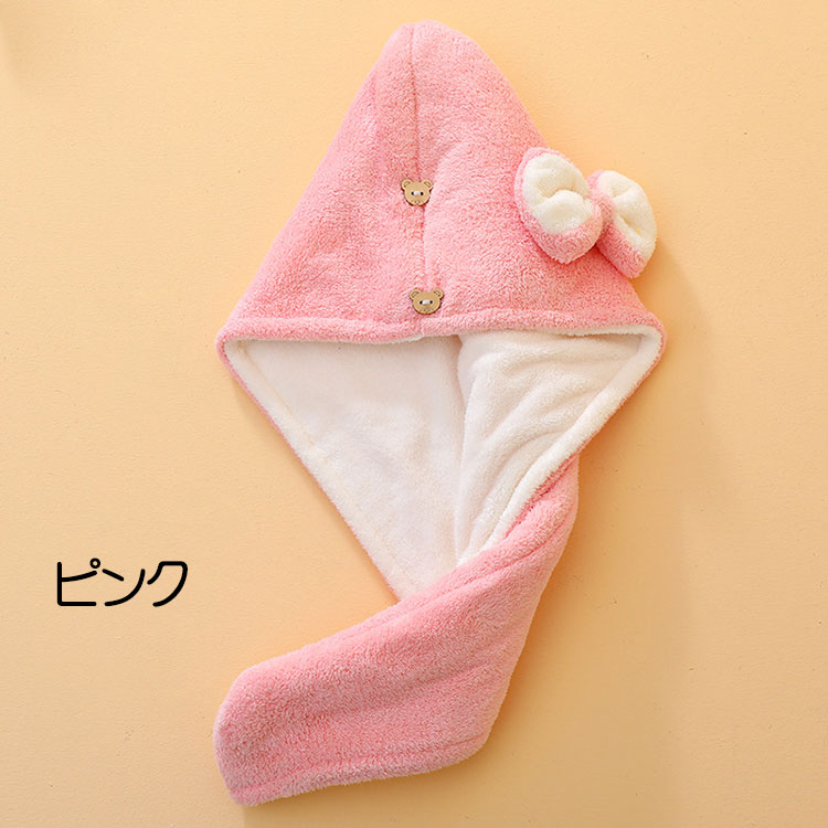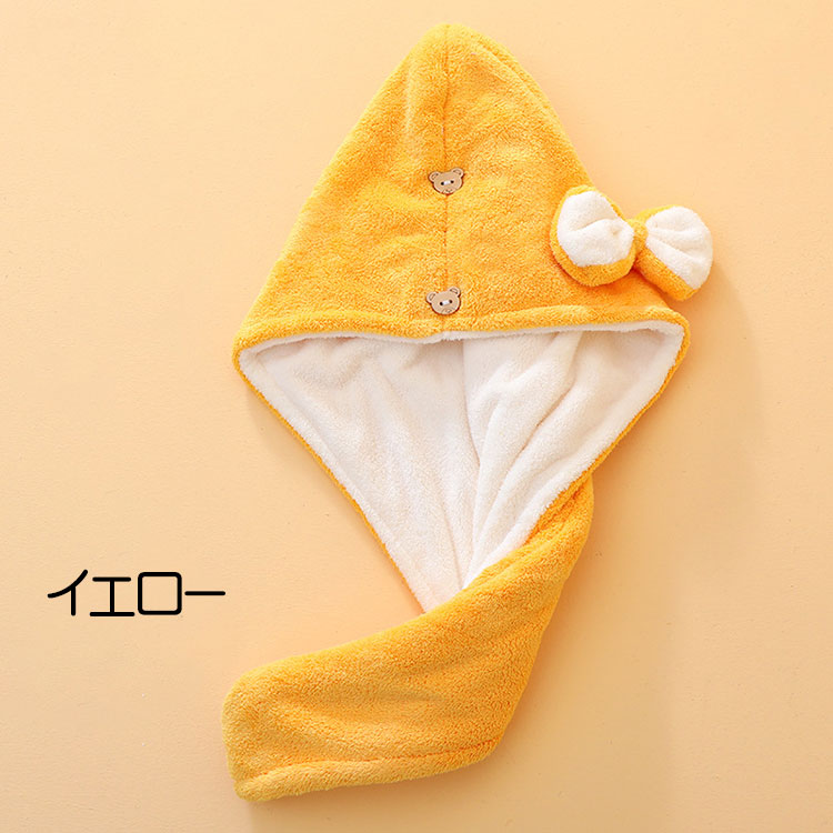 ヘアドライタオル 吸水性抜群 二層 か ピンク イエロー ブルー ダークブルー