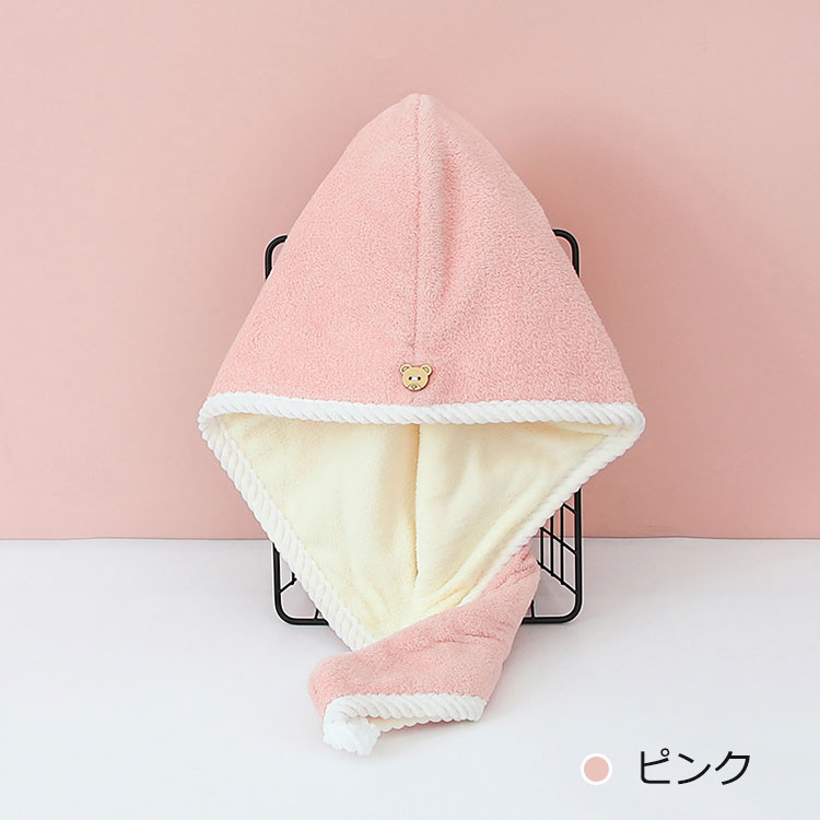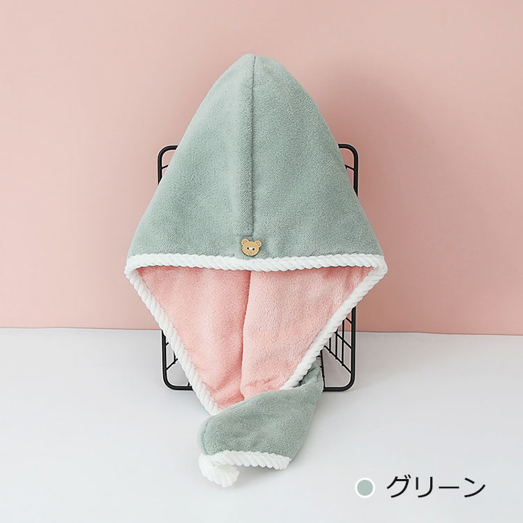 極厚 ヘアドライタオル ドライキャップ ピンク グリーン グレー ブルー