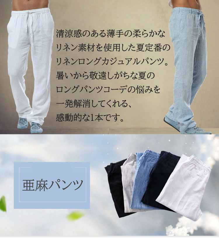 亜麻 パンツ メンズ 夏 リネン カジ メンズファッション 割引 ホワイト ブラック ブルー グレー ネイビー カーキ 【S】 【M】 【L】 【XL】