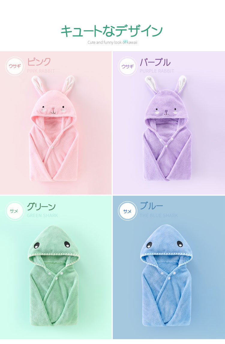 ベビー ラップタオル キッズ 湯上りポ グリーン ブルー パープル