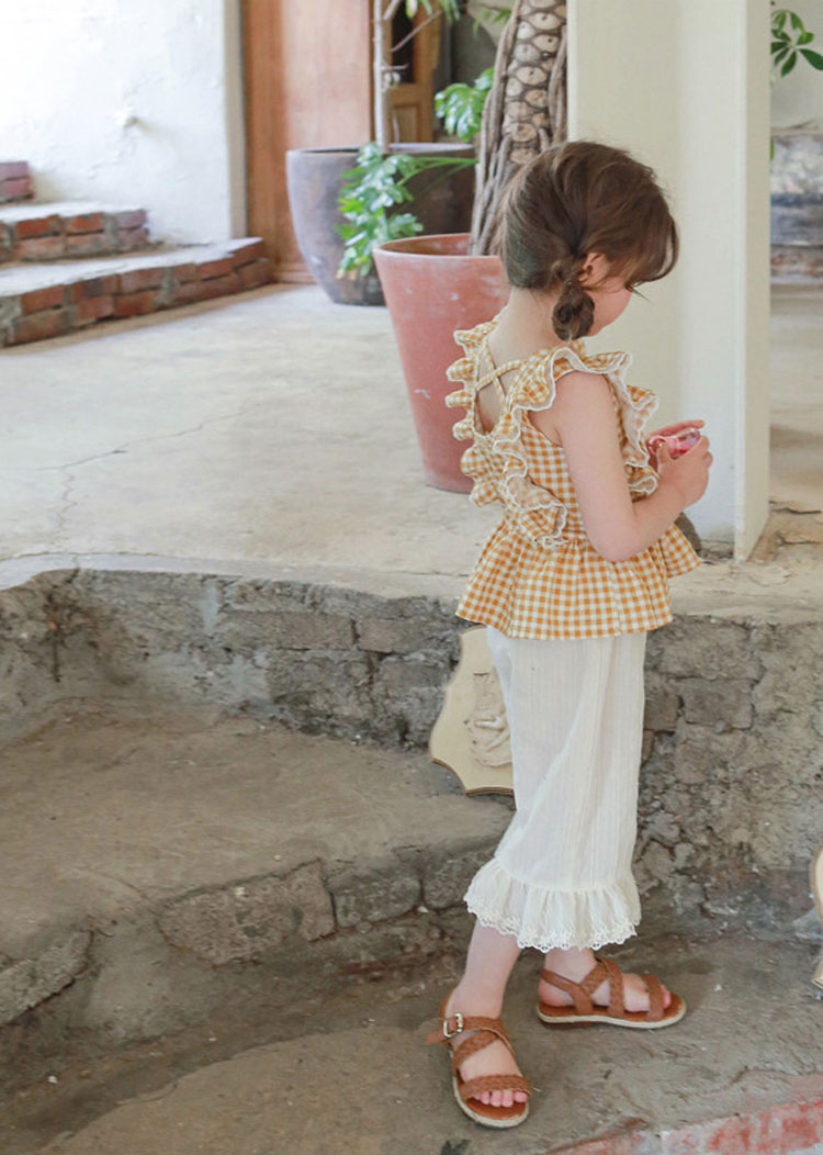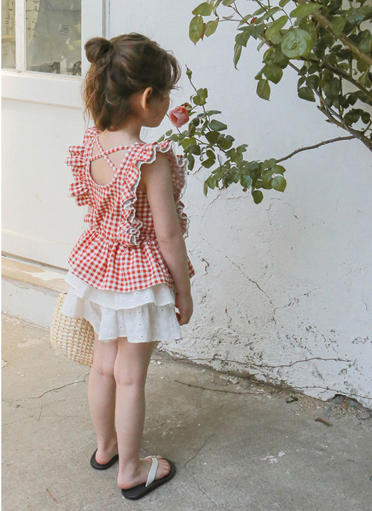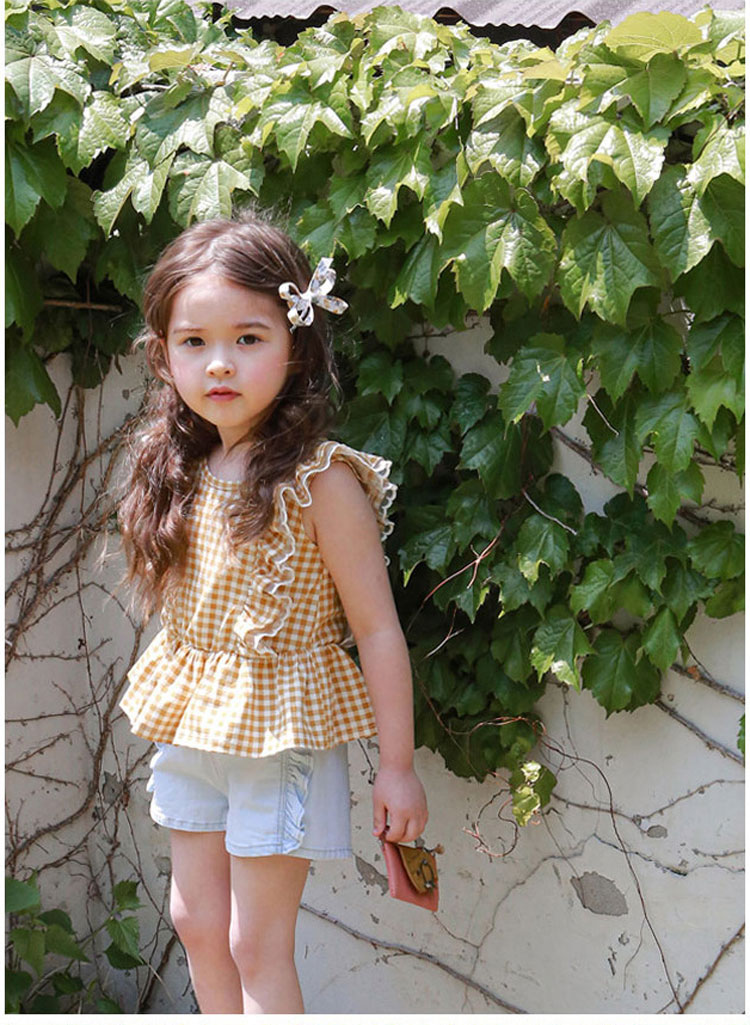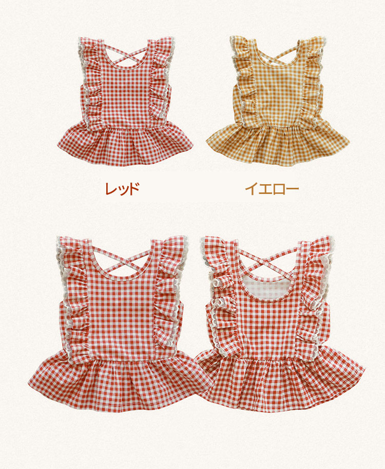 女の子シャツ フリル チョック柄 キッ キッズ トップス Tシャツ カットソー 割引 レッド イエロー 90cm 100cm 110cm 120cm 130cm 140cm 150cm