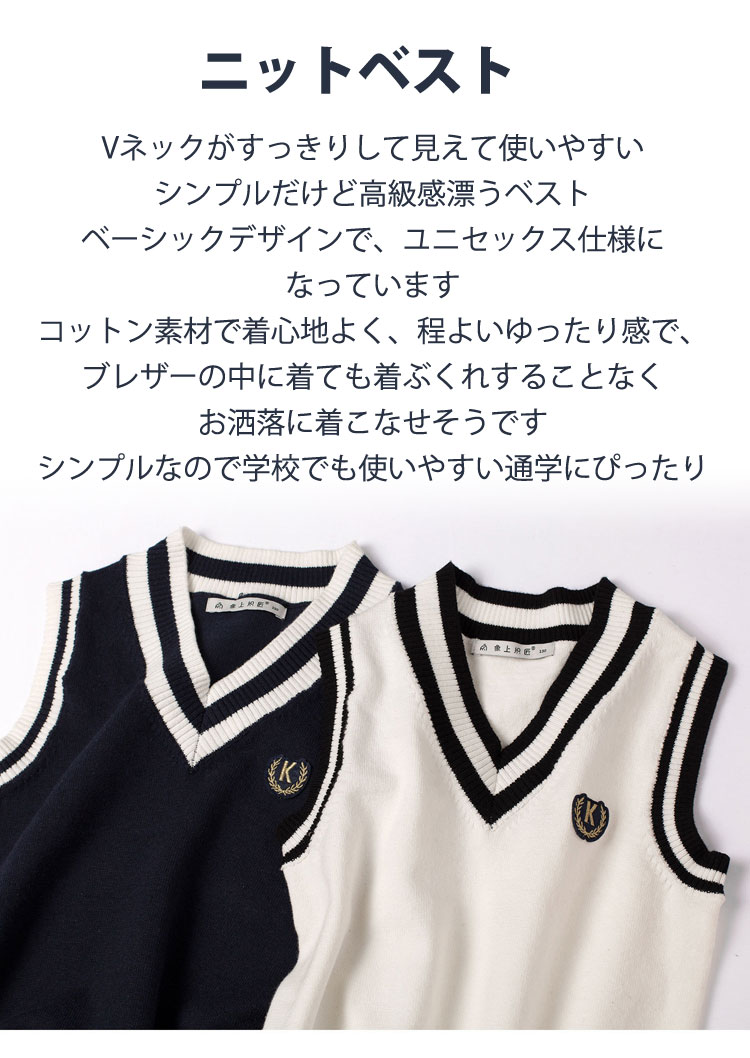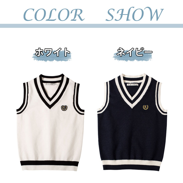 ニットベスト Vネック スクールベスト キッズ トップス ベスト 続々登場 ホワイト ネイビー 100cm 110cm 120cm 130cm 140cm 150cm 160cm 170cm 180cm