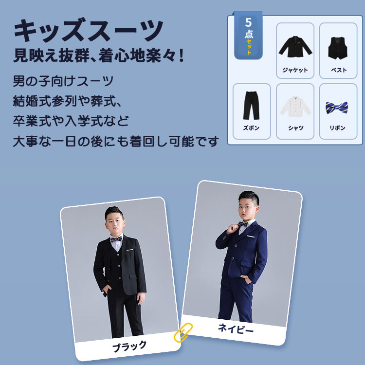5点セット 卒業式 入学式 キッズ ス キッズ スーツ カジュアルセットアップ スーツ お得なセール ブラック ネイビー 130cm 140cm 150cm 160cm 170cm 180cm