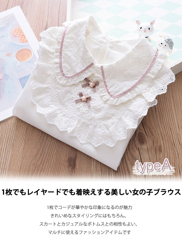 女の子 トレーナー ブラウス 白 フォ キッズ トップス Tシャツ カットソー 続々登場 type-A type-B type-C type-D 80cm 90cm 100cm 110cm 120cm 130cm 140cm 150cm 160cm