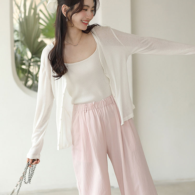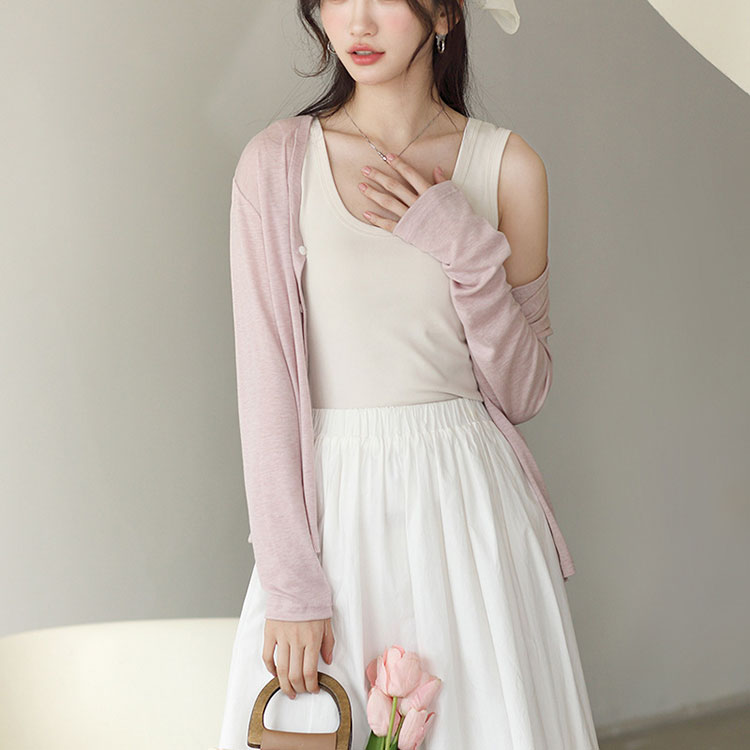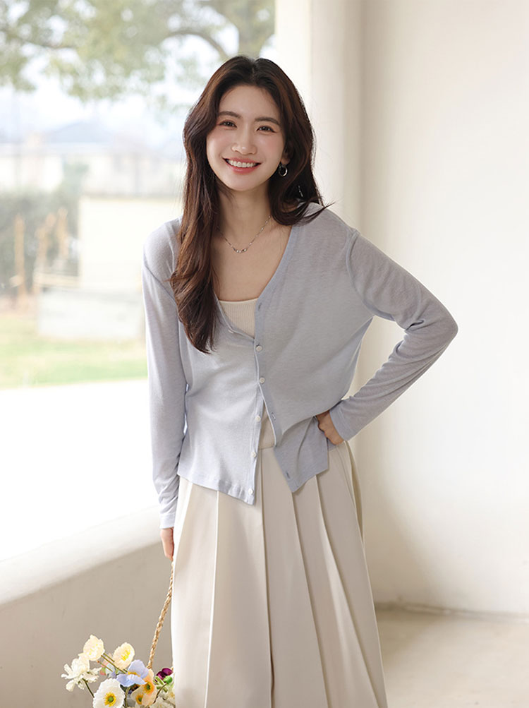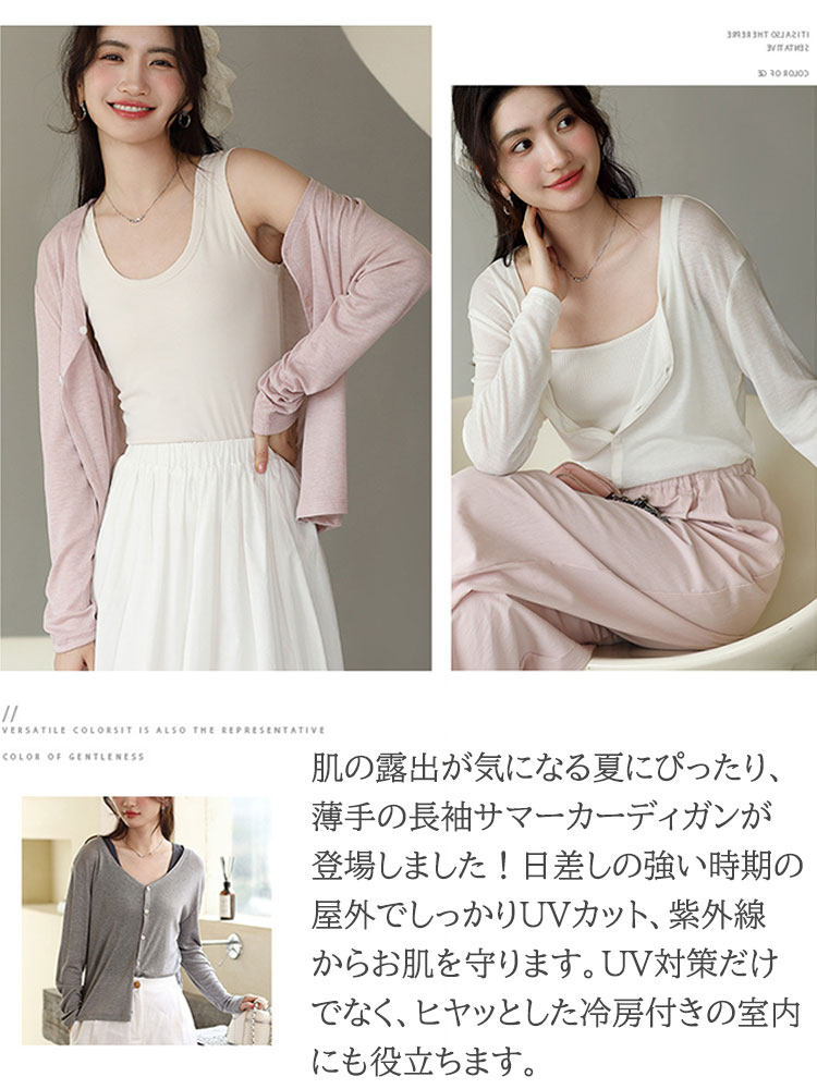 夏 カーディガン レディース Vネック レディースファッション 新作 ブルー ピンク グレー ブラック ホワイト ベージュ M L