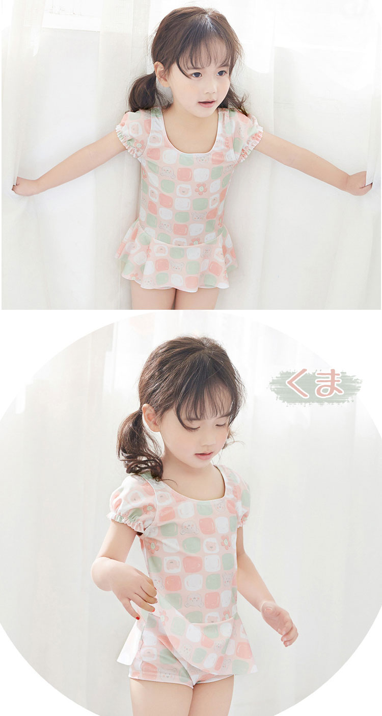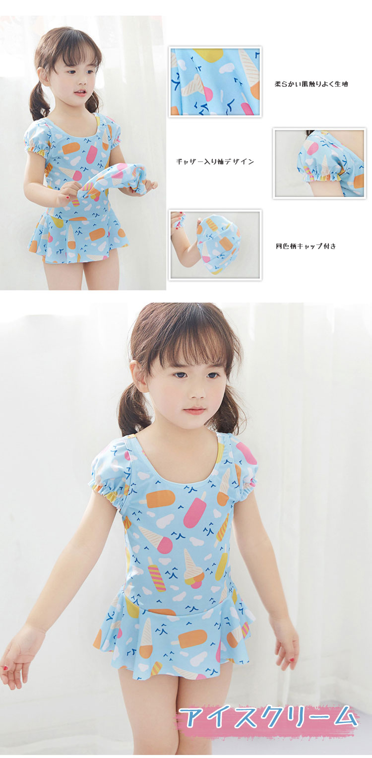 女の子 水着 ワンピース水着 キッズ キッズ 水着 続々登場 ハナ くま アイスクリーム 2# 4# 6# 8# 10# 12#