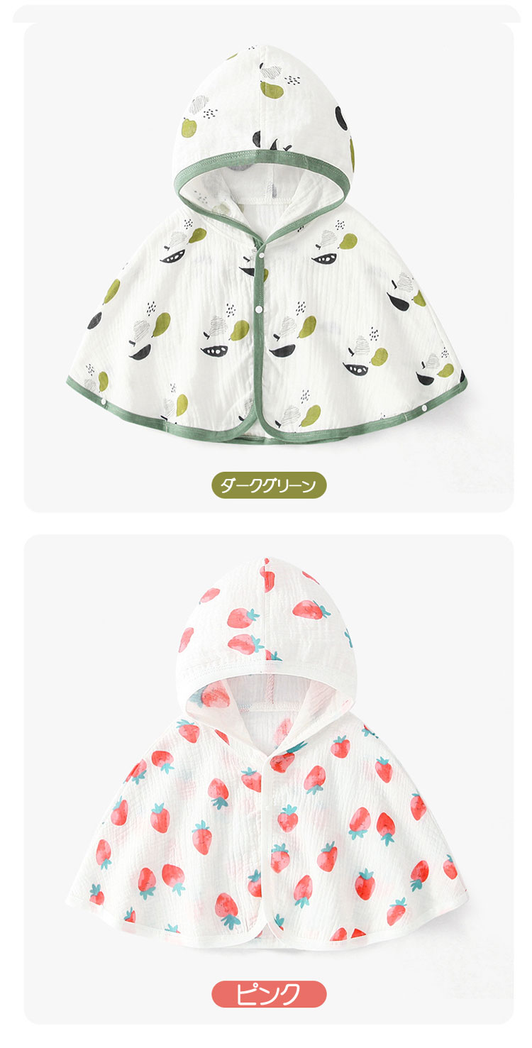 ベビーポンチョ フード付きバスタオル グリーン イエロー ダークグリーン