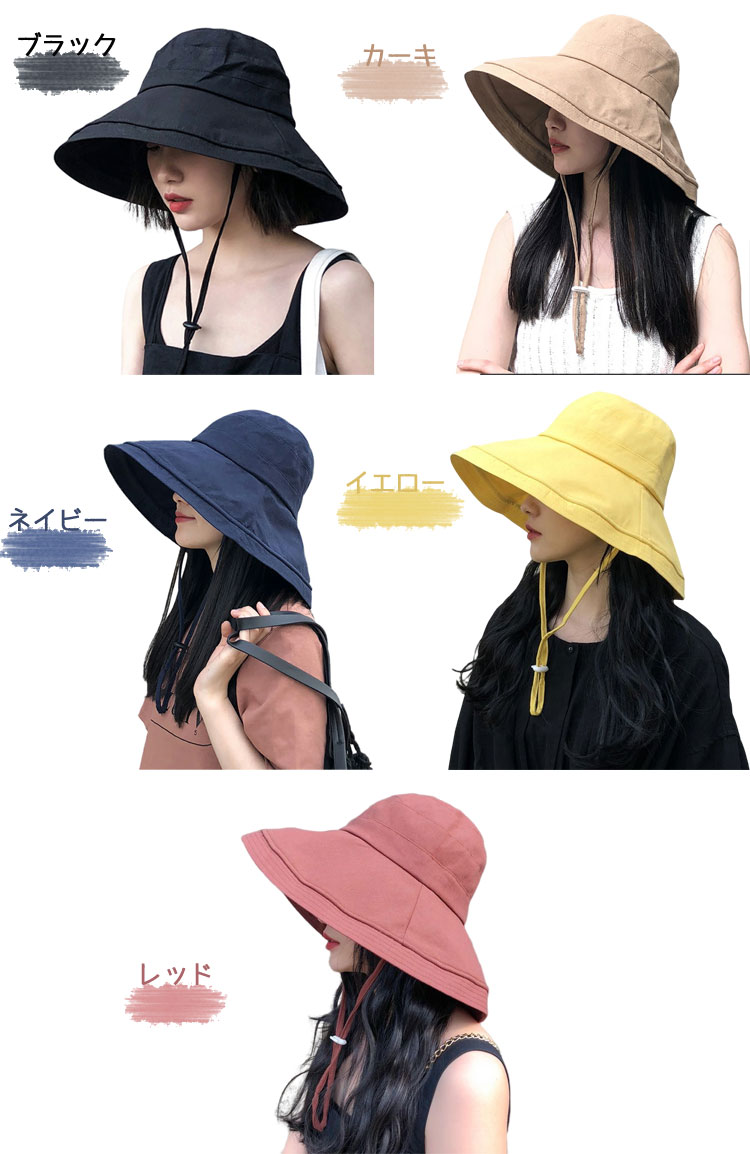 UVカット 帽子 レディース 折りたた 帽子 レディース帽子 ハット 37%Off ブラック カーキ ネイビー イエロー レッド