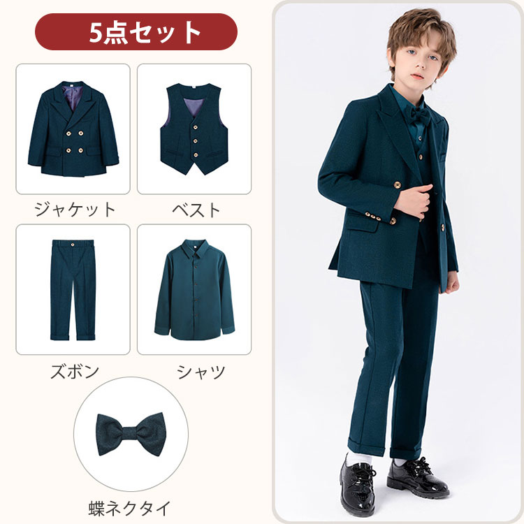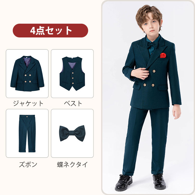ダークグリーン 男の子 スーツ フォー キッズ スーツ カジュアルセットアップ スーツ お得なセール 4点セット 5点セット 90cm 100cm 110cm 120cm 130cm 140cm 150cm 160cm 170cm