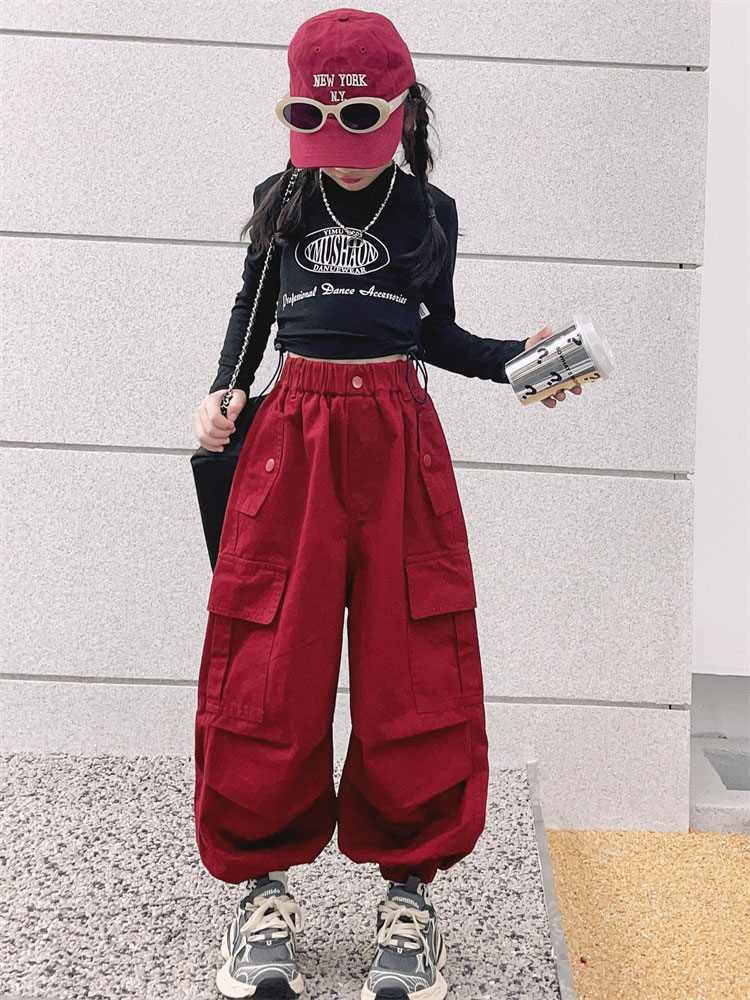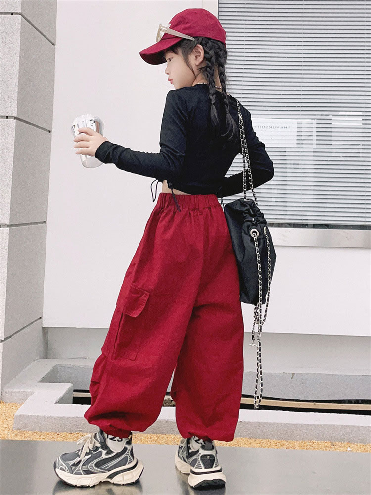 ダンスウェア セットアップ カーゴパン キッズ ベビー マタニティ 35%Off Tシャツ(白)+パンツ(黒) Tシャツ(白)+パンツ(ワイン) Tシャツ(黒)+パンツ(黒) Tシャツ(黒)+パンツ(ワイン) 110cm 120cm 130cm 140cm 150cm 160cm 170cm