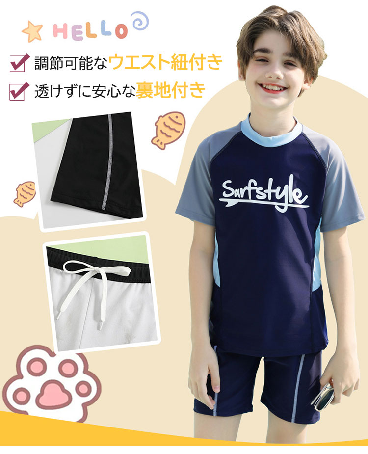 男の子 半袖 水着 セパレート キッズ キッズ ベビー マタニティ 36%Off ブラック ネイビー 140cm 150cm 160cm 165cm 170cm